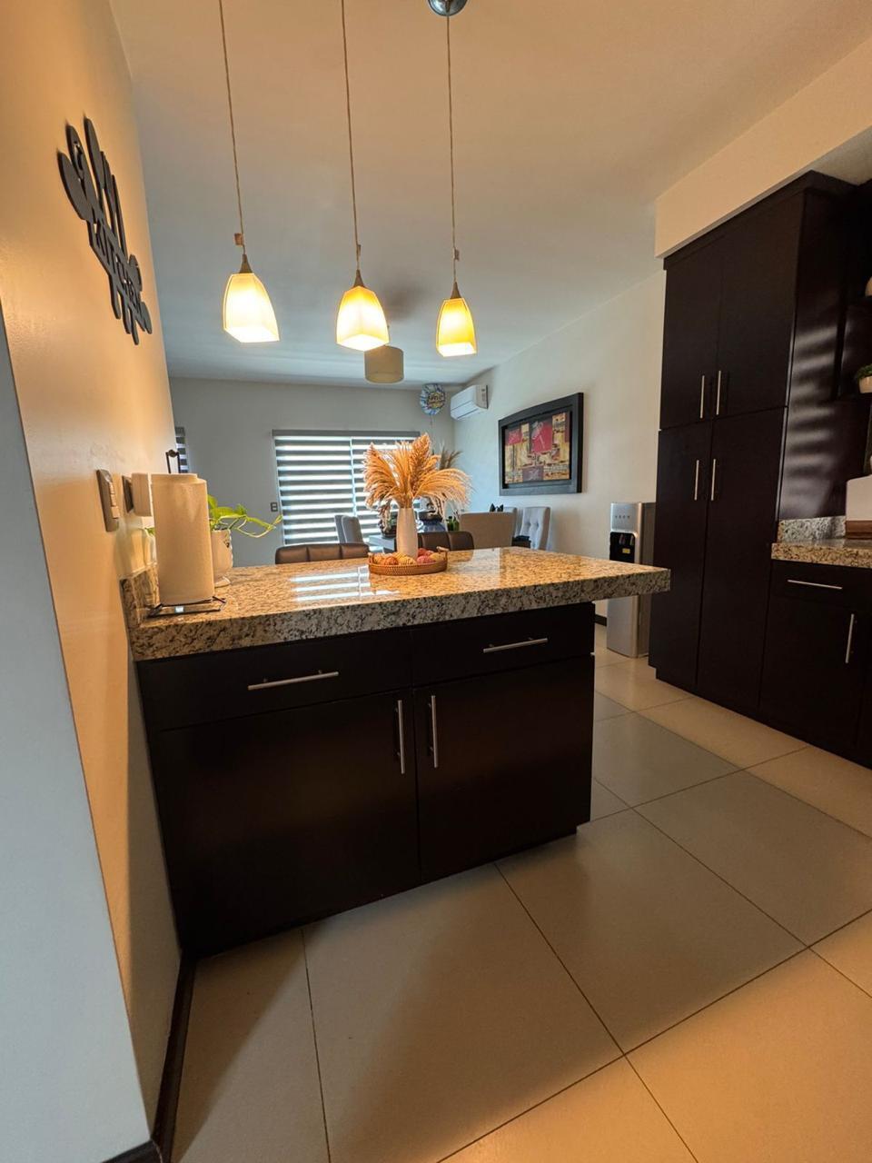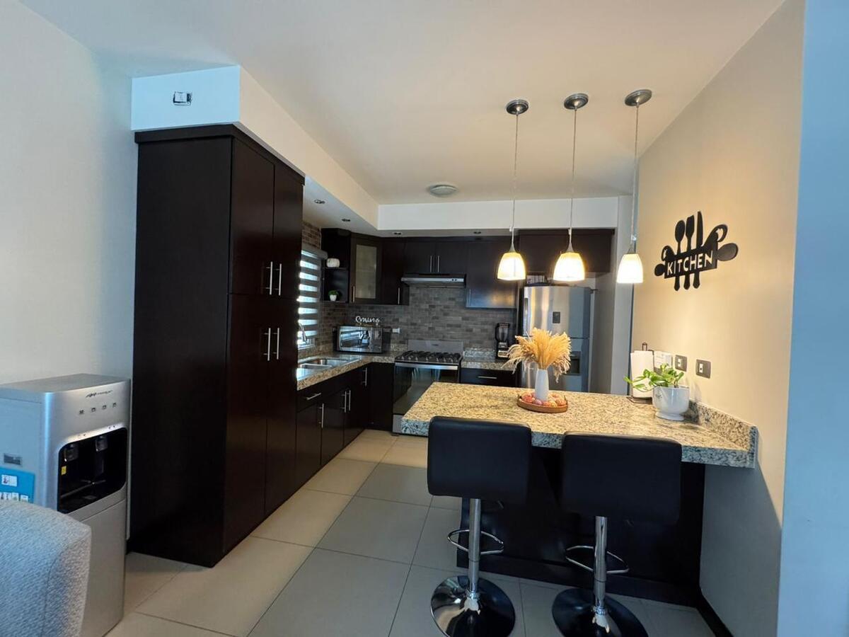 Cocina integral equipada con barra desayunadora y cubierta de granito