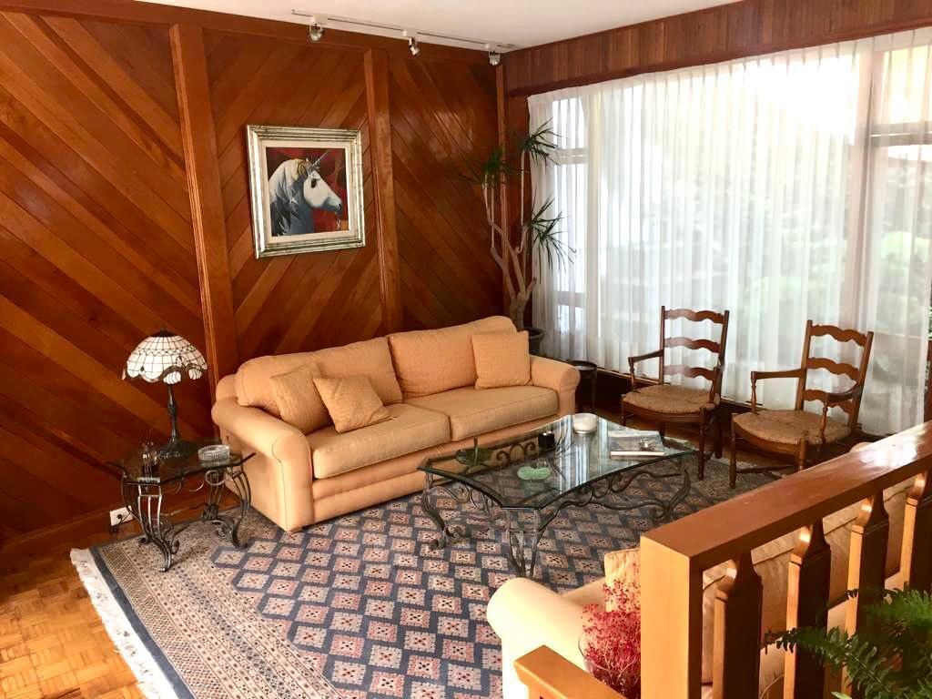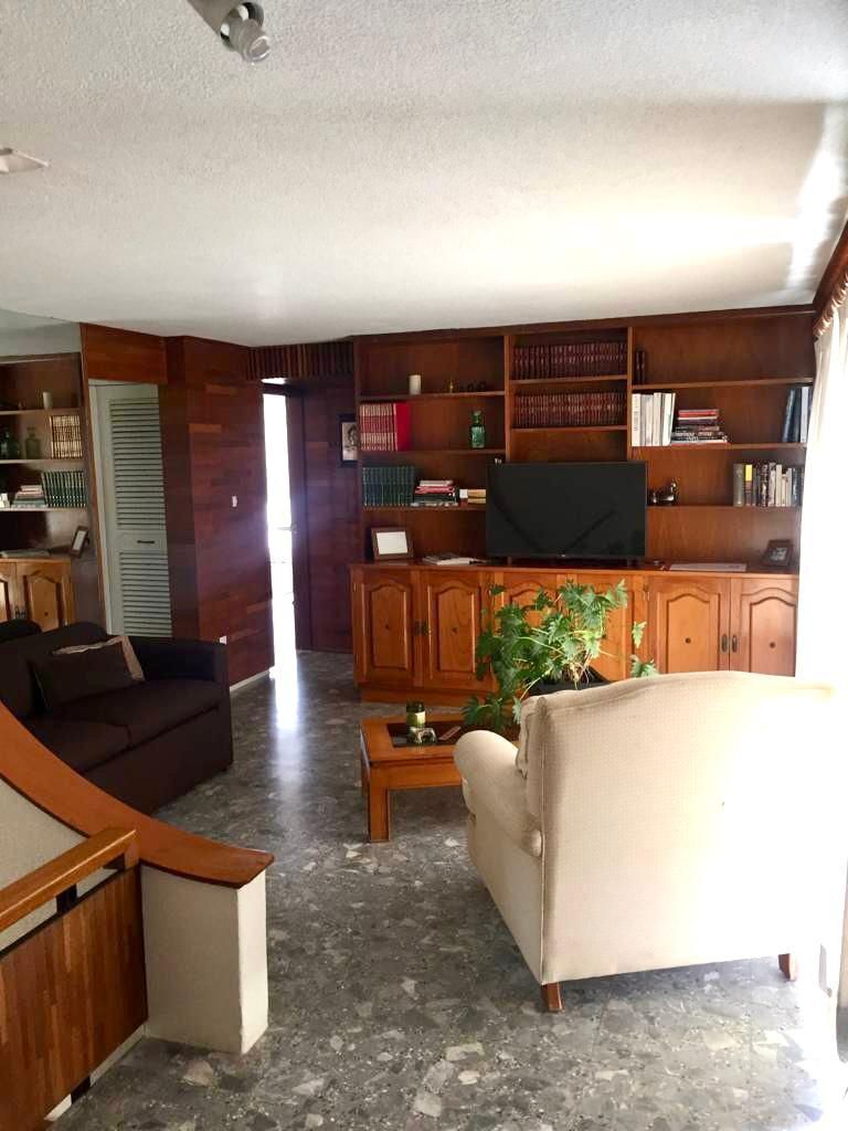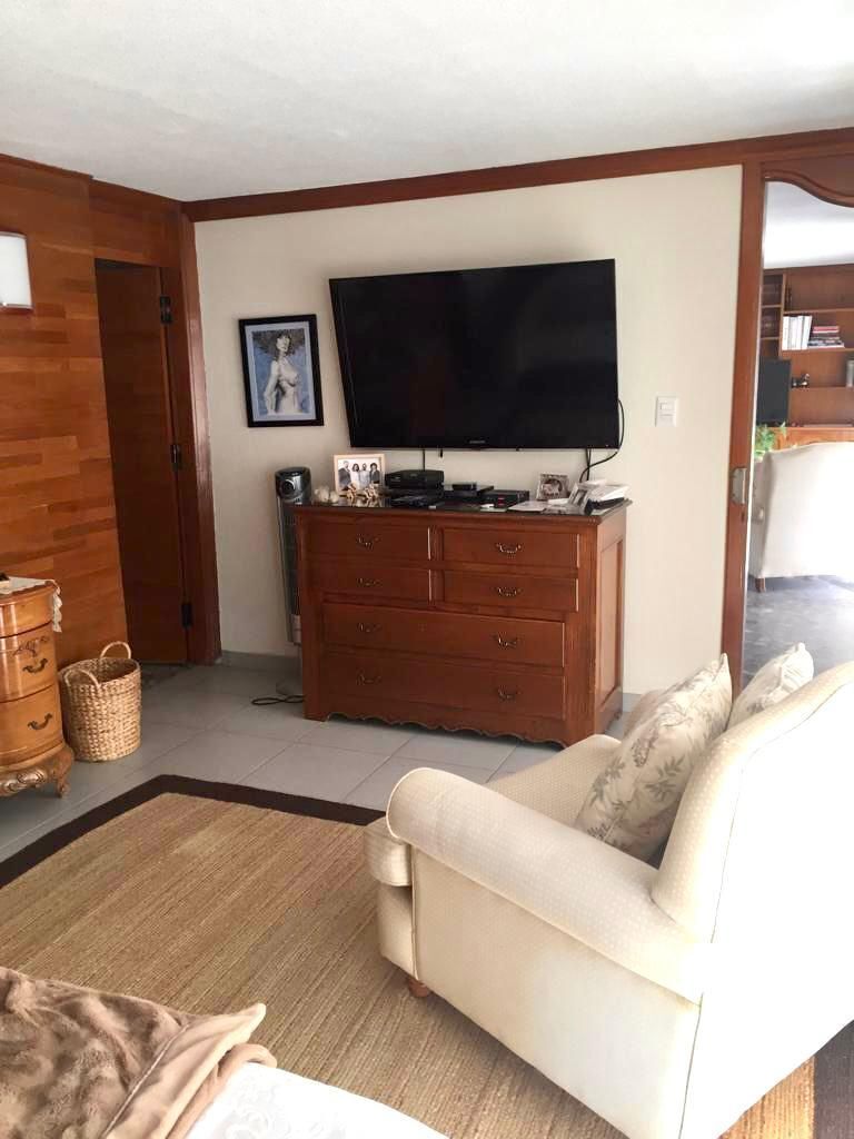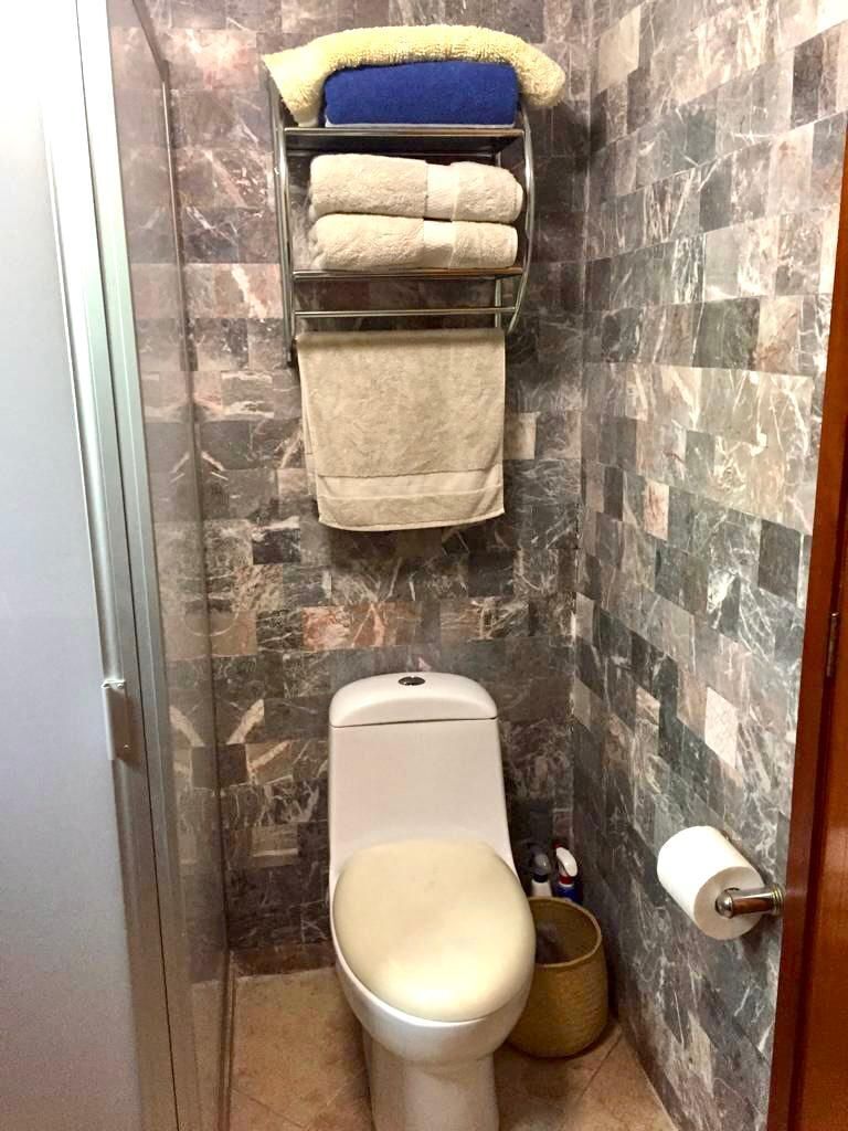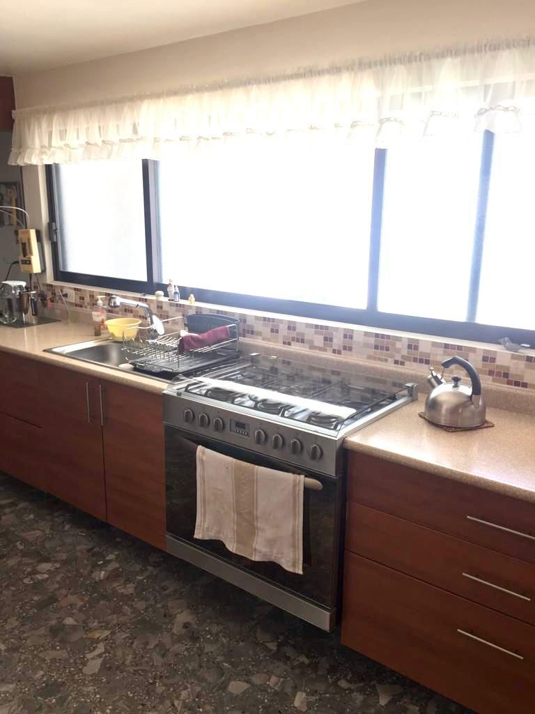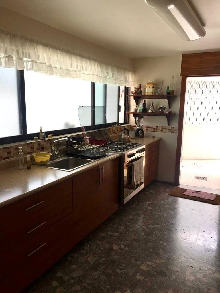 House on 2 levels, 3 bedrooms, the main one with walking closet and full bathroom, 2 bedrooms share a full bathroom, TV room, large living room and dining room, kitchen with breakfast bar, separate cupboard, 2 white closets, large roof terrace with service room and full bathroom.