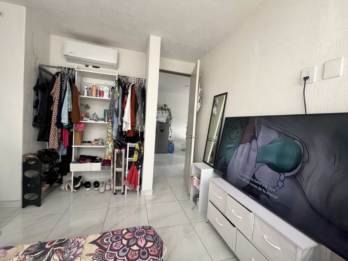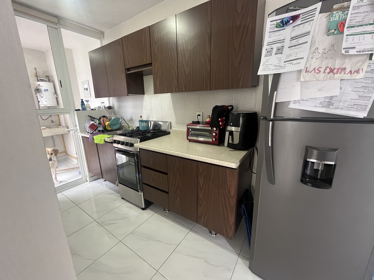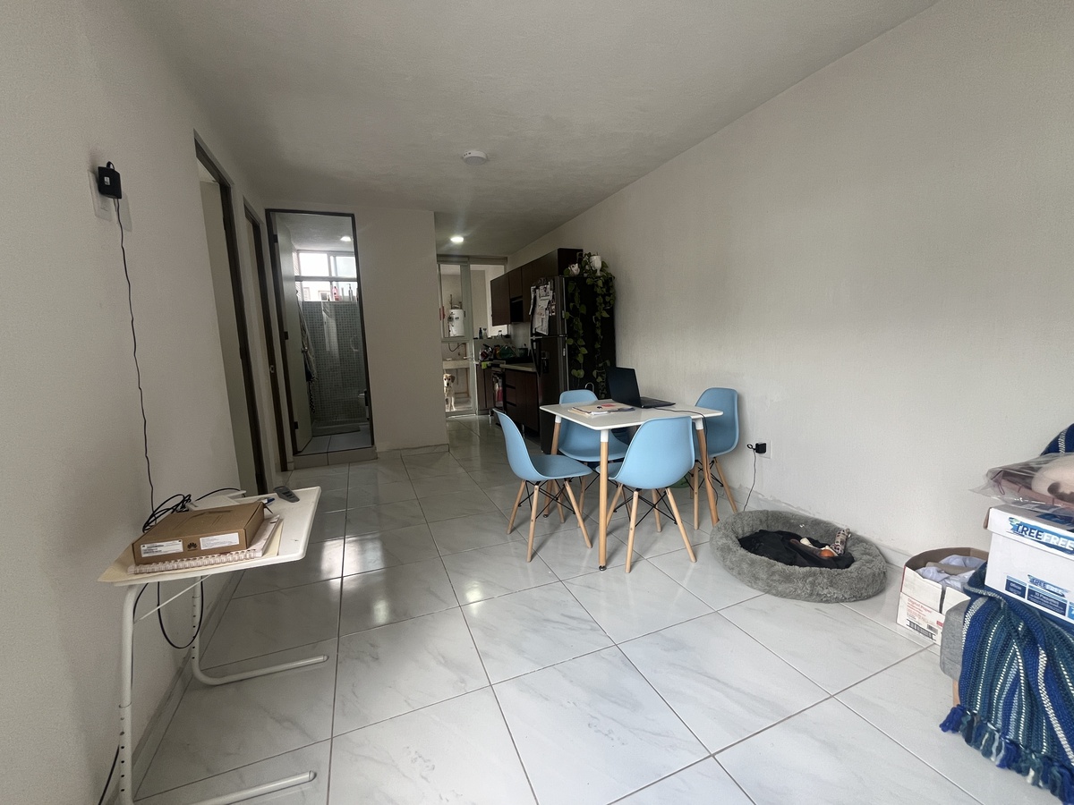 The apartment consists of a living room, dining room, kitchen, 2 spacious bedrooms with 1 full bathroom, patio, 1 parking space, surveillance, and parking for visitors, various green areas, under construction central park with basketball courts, 4 terraces and events hall.El departamento consta de sala, comedor, cocina integral, 2 amplias recamaras con 1 completo, patio, 1 cajón de estacionamiento, cuenta con vigilancia, y estacionamiento para visitas, diversas areas verdes, en construcción parque central con canchas de basquetball, 4 terrazas y salón de eventos.