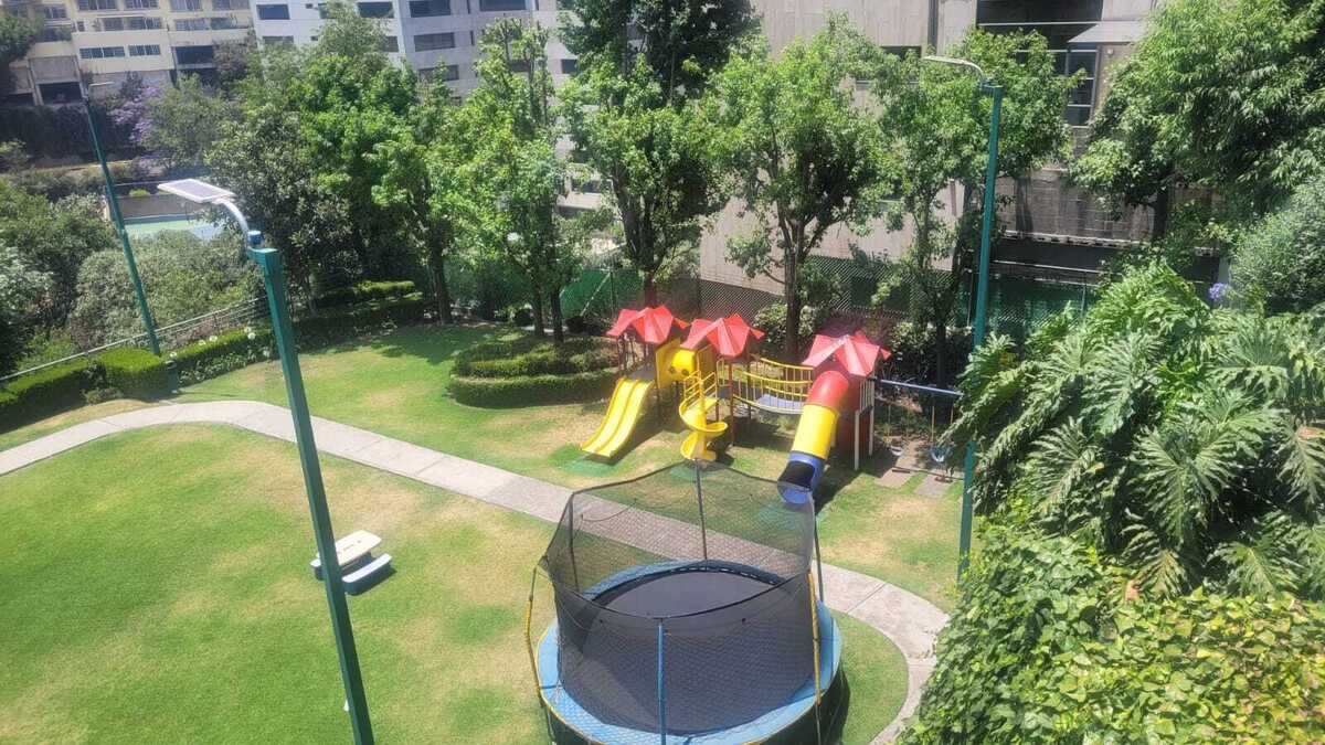 Party room, gym, covered pool, jacuzzi, children's garden, garden with grills, basketball court, garden for babies and dogs, 24-hour security. Just a step away from Hospital Ángeles de Interlomas, Chedraui, Walmart Express, the exit to the Chamapa - La Venta highway, schools like Sierra Nevada, Miraflores, El Roble, Anglo, etc., shopping centers like Paseo Interlomas, Interlomas Shopping Center, Interlomas Park, restaurants, and corporate offices.Departamento en venta en Interlomas en Millenia Residencial con excelentes vistas distribuido en 161 m2 de área habitable más 70 m2 de terraza