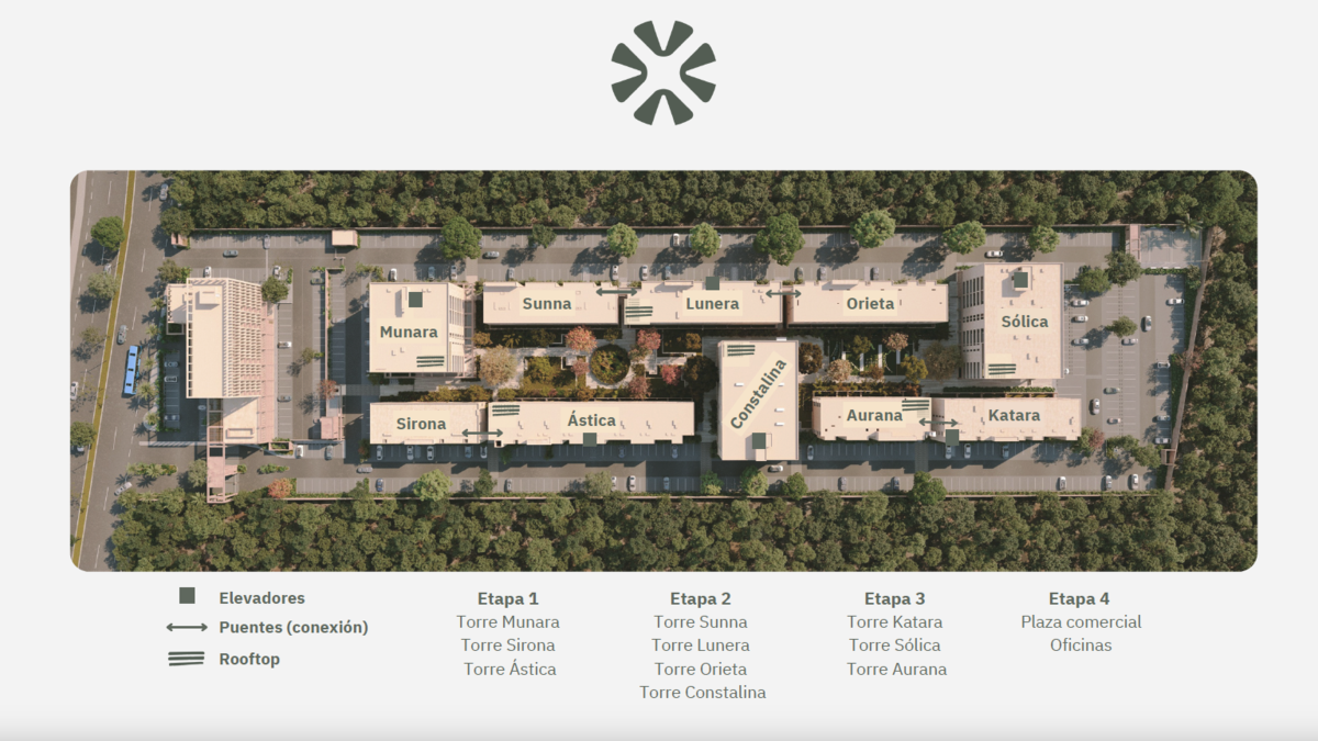 Contará con 10 torres y una plaza comercial con oficinas, dividido en 4 Etapas: