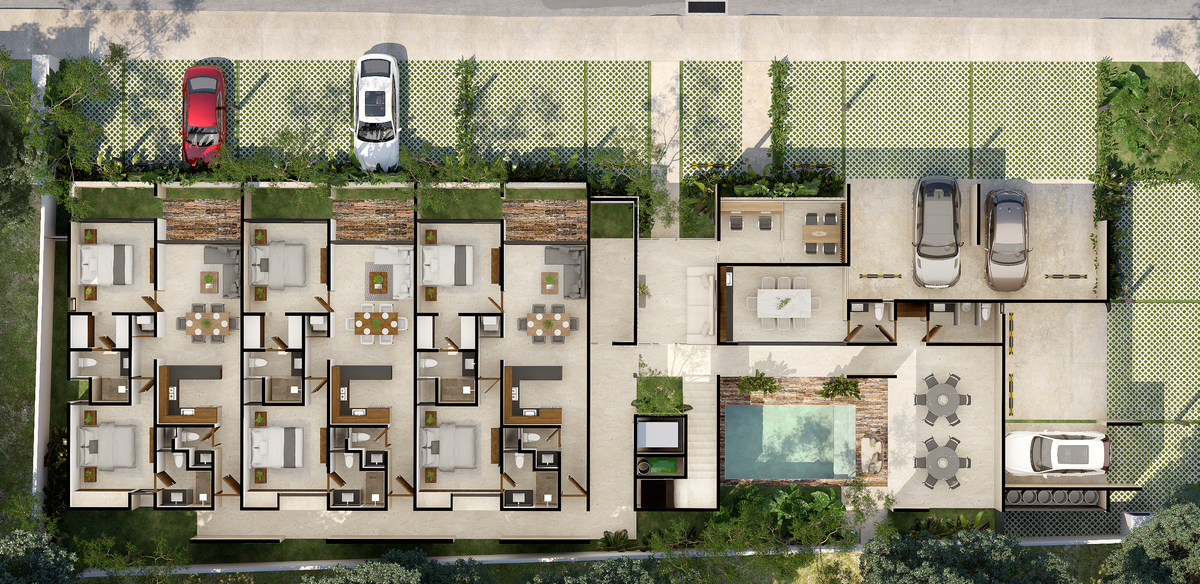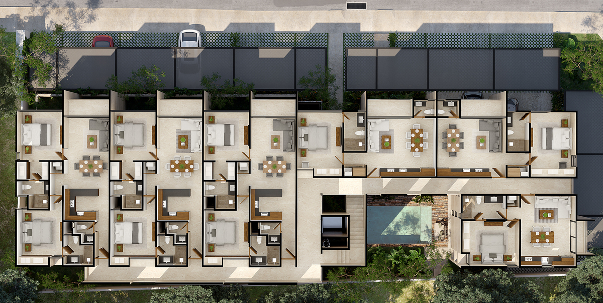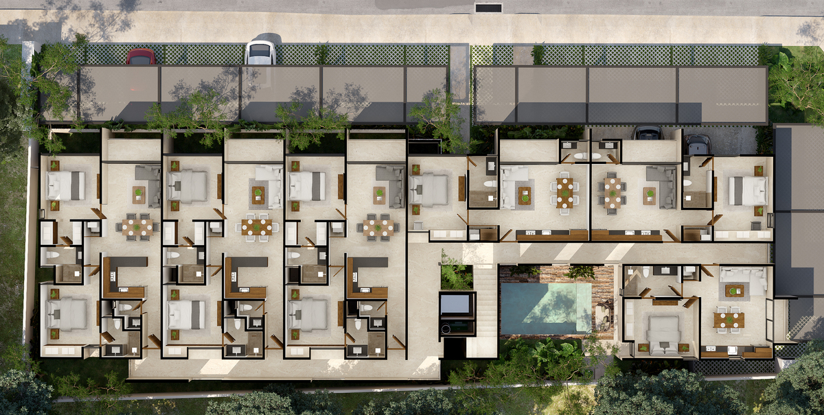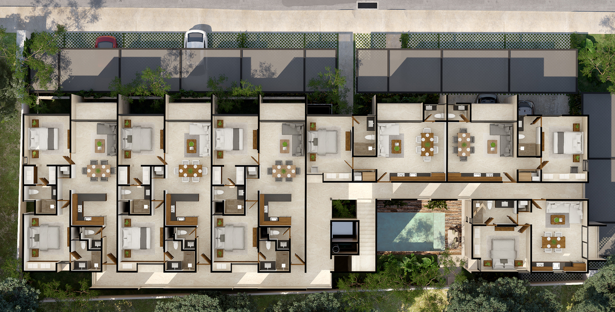 * This is a render that may vary from the actual result.*Eme 21 es un desarrollo de 21 departamentos con tres modelos a elegir para adaptarse a cada estilo de vida. — Vive en un entorno moderno y tranquilo dentro del periférico y fuera del caos, con amenidades y acabados que honran lo mejor de Mérida.