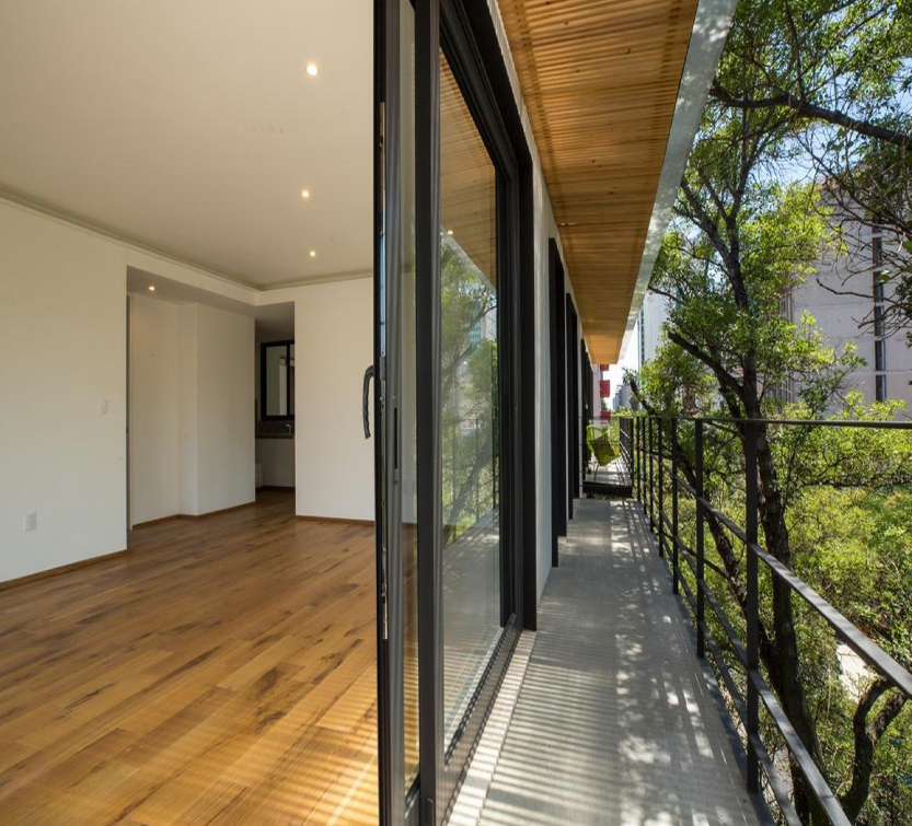 Cuenta con iluminación natural y vista arbolada al exterior, puedes disfrutar de los atardeceres desde el balcón que rodea el área social.