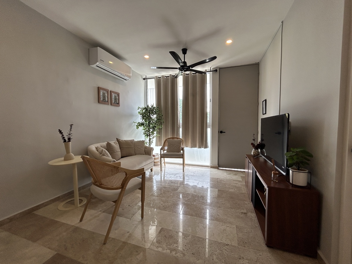* The published information is for informational purposes and may be subject to changes.Vive con la comodidad en este departamento de 2 habitaciones totalmente amueblado y equipado, dentro de una privada que ofrece amenidades para disfrutar al máximo tu día a día. Ubicado a pocos minutos de universidades reconocidas como Anáhuac y TecMilenio, plazas comerciales y con fácil acceso a la carretera hacia Progreso.