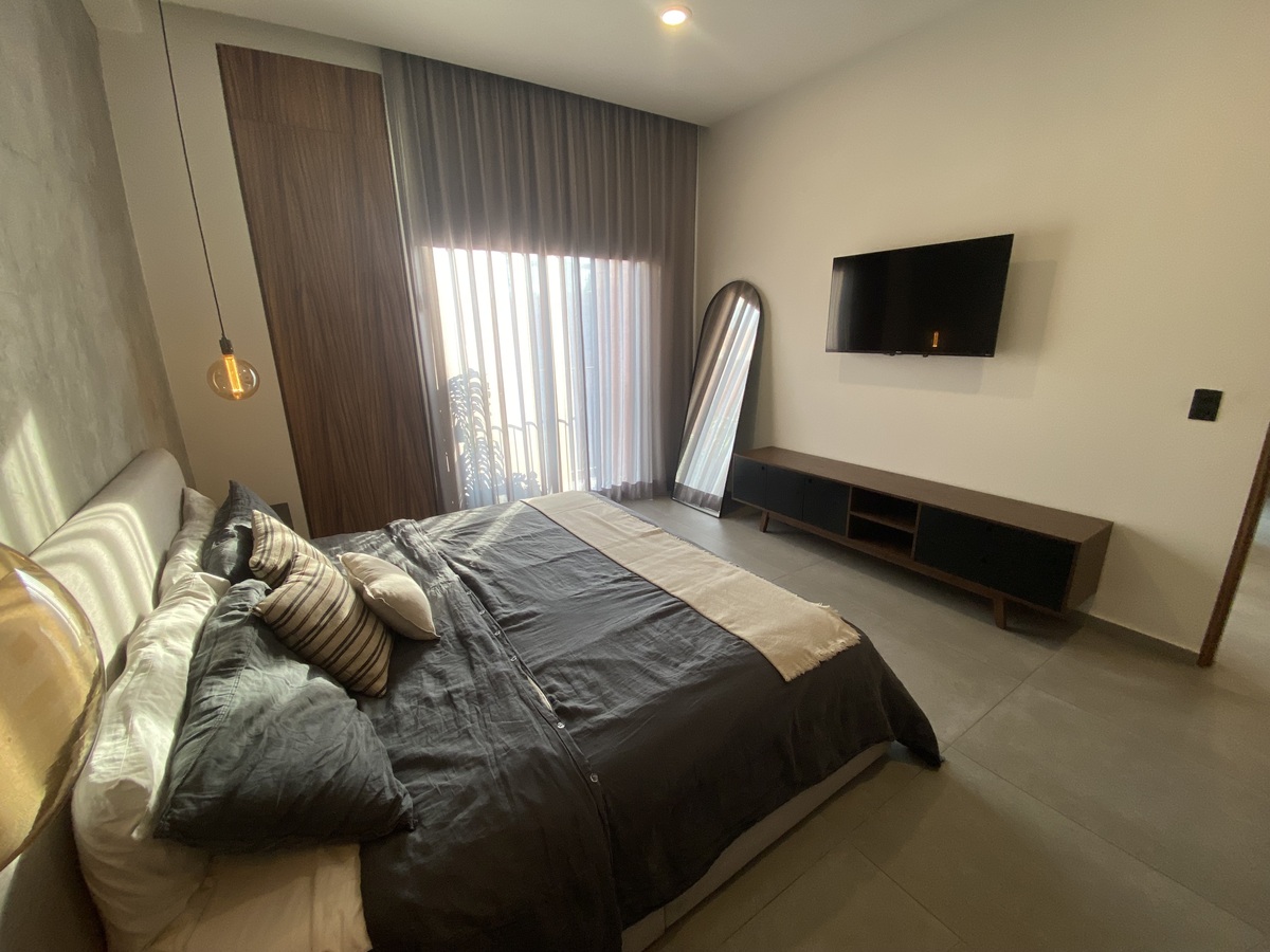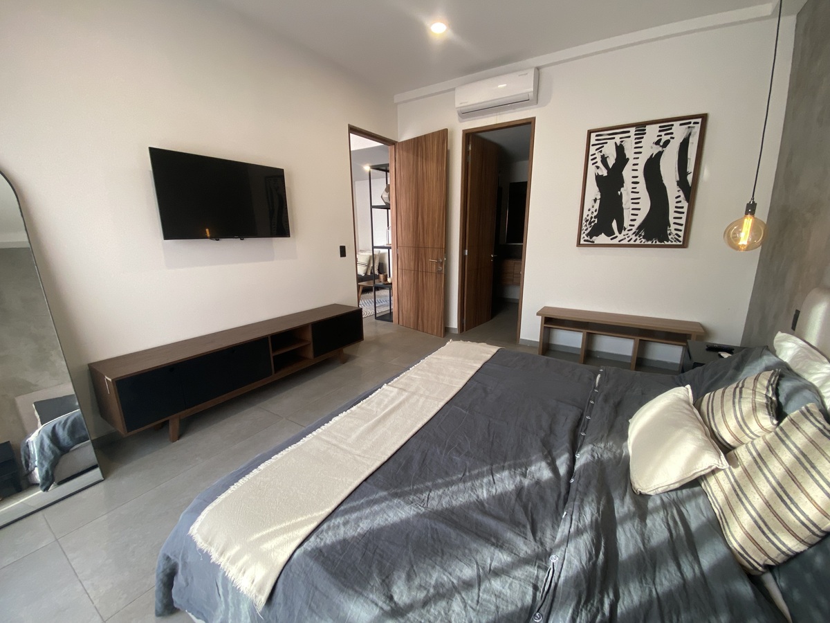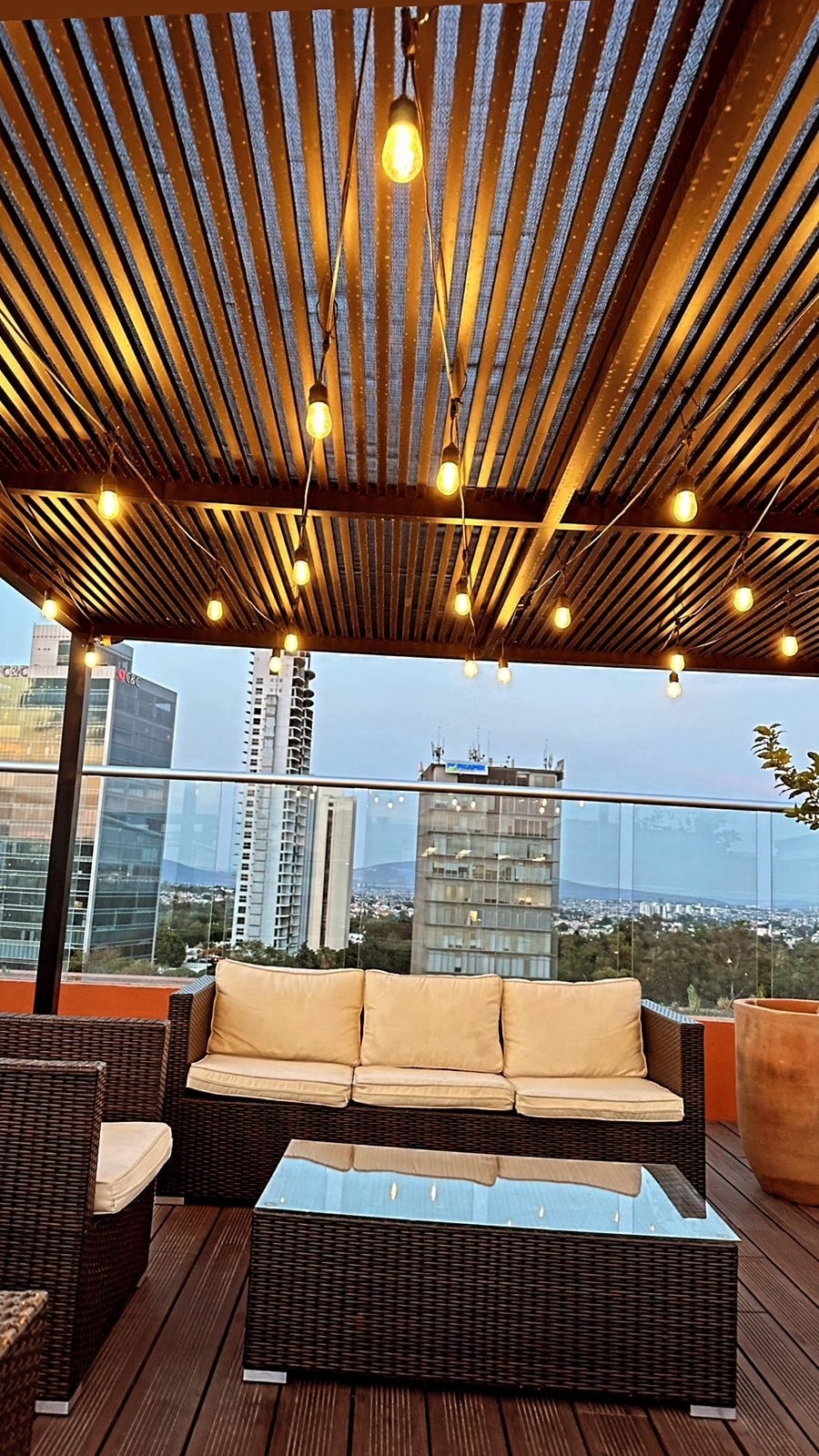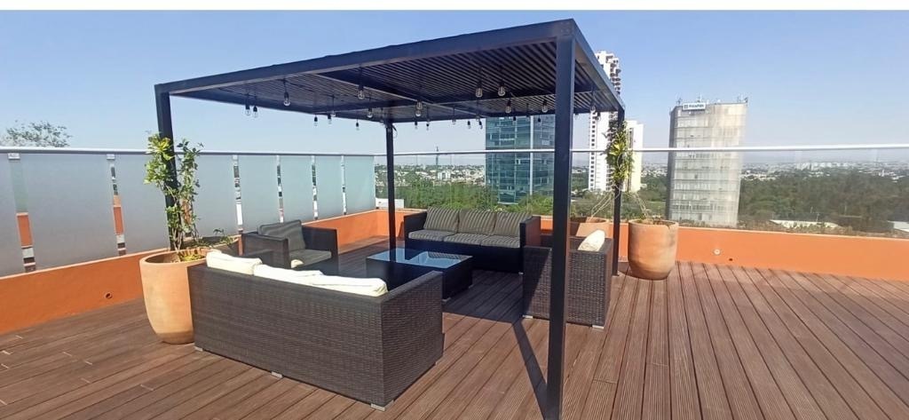 Excellent apartment in Colomos Providencia with unbeatable location, Brasilia 10, level 7, with an area of 100 square meters, fully furnished and decorated with excellent taste, air conditioning in all areas, 2 bedrooms with king size bed and full bathroom, in addition to a third full bathroom for guests, fully equipped integral kitchen, with island and granite countertops, living / dining room, laundry area, 1 parking space and storage in the basement. The development has a lobby with 24-hour security, controlled access, Sky Fitness 30 meters high with gym, 280-meter jogging circuit on the roof, recreational pool with sun loungers, large coworking area with wifi and air conditioning with a view of the Colomos, as well as a terrace with a grill. Central park with reading and resting area as well as children's games. Commercial area.Excelente departamento en Colomos Providencia con inmejorable ubicación, Brasilia 10, nivel 7, con superficie de 100 metros cuadrados, totalmente amueblado y decorado con excelente gusto, aire acondicionado en todas las áreas, 2 habitaciones con cama king size y baño completo, además de un tercer baño completo para visitas, cocina integral totalmente equipada, con isla y cubiertas de granito, sala / comedor, área de lavado, 1 cajón de estacionamiento y bodega en sótano. El desarrollo cuenta con lobby con vigilancia las 24 horas, acceso controlado, Sky Fitness a 30 metros de altura con gimnasio, circuito de jogging de 280 metros en roof, alberca recreativa con asoleaderos , amplia área de cowork con wifi y aire acondicionado con vista a los colomos, así como terraza con asador. Parque central con zona de lectura y descanso así como juegos infantiles. Zona comercial.