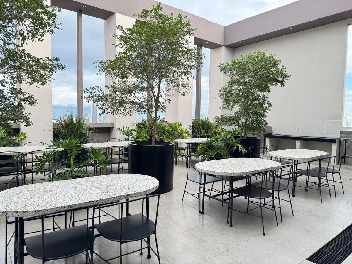 El edificio cuenta con seguridad 24/7, business center y terraza en el piso 21 con área cerrada con mesa de billar y área abierta con asadores.