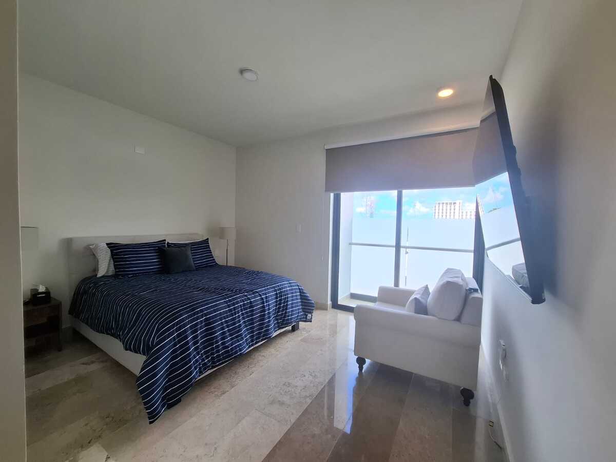 -2 Recámaras, con aires acondicionado, closet, TV y balcón.