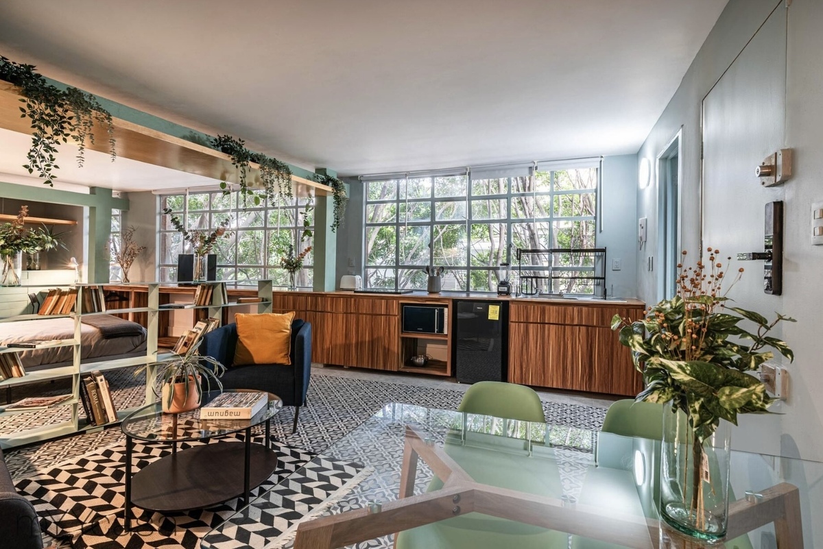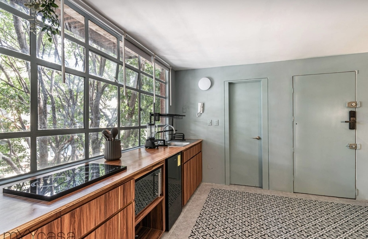 Furnished loft-style apartment for rent on Chicago Street, Naples, Benito Juarez, CDMX. The apartment is ideal for executives traveling to Mexico City for work, students, or young singles looking to become independent from their family home. It is rented fully furnished and with everything necessary for accommodation, consisting of: