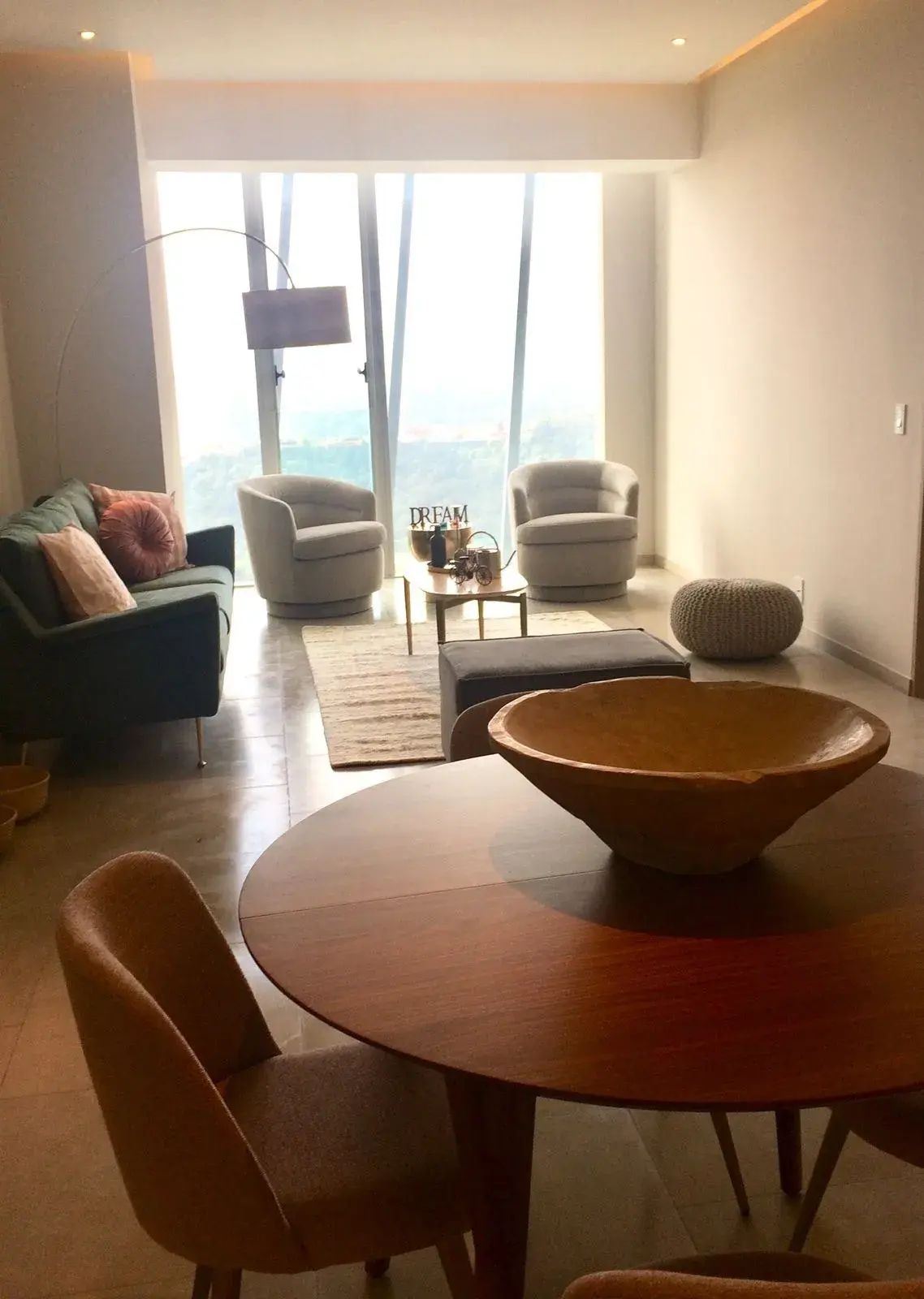 Beautiful furnished and equipped apartment for rent in Paradox Santa Fe. It consists of 100m2, 2 bedrooms, 2 full bathrooms, living room, dining room, kitchen, laundry room, 2 parking spaces, park view.