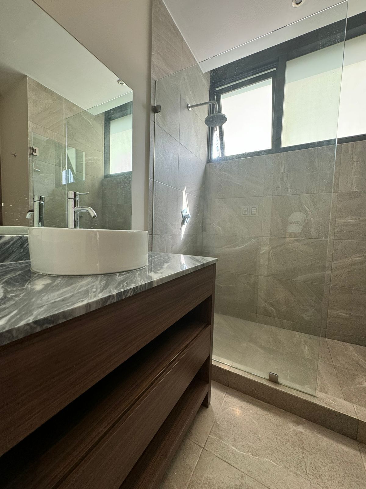 • 3 bedrooms, all with walk-in closets, 2 of them with full bathrooms, the third shares a bathroom with the guest bathroom (access from the bedroom and the social area)