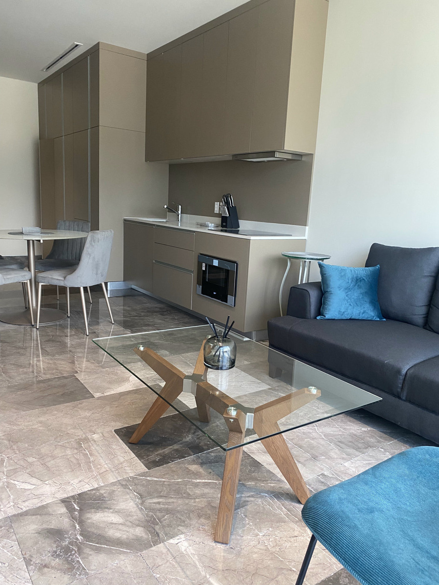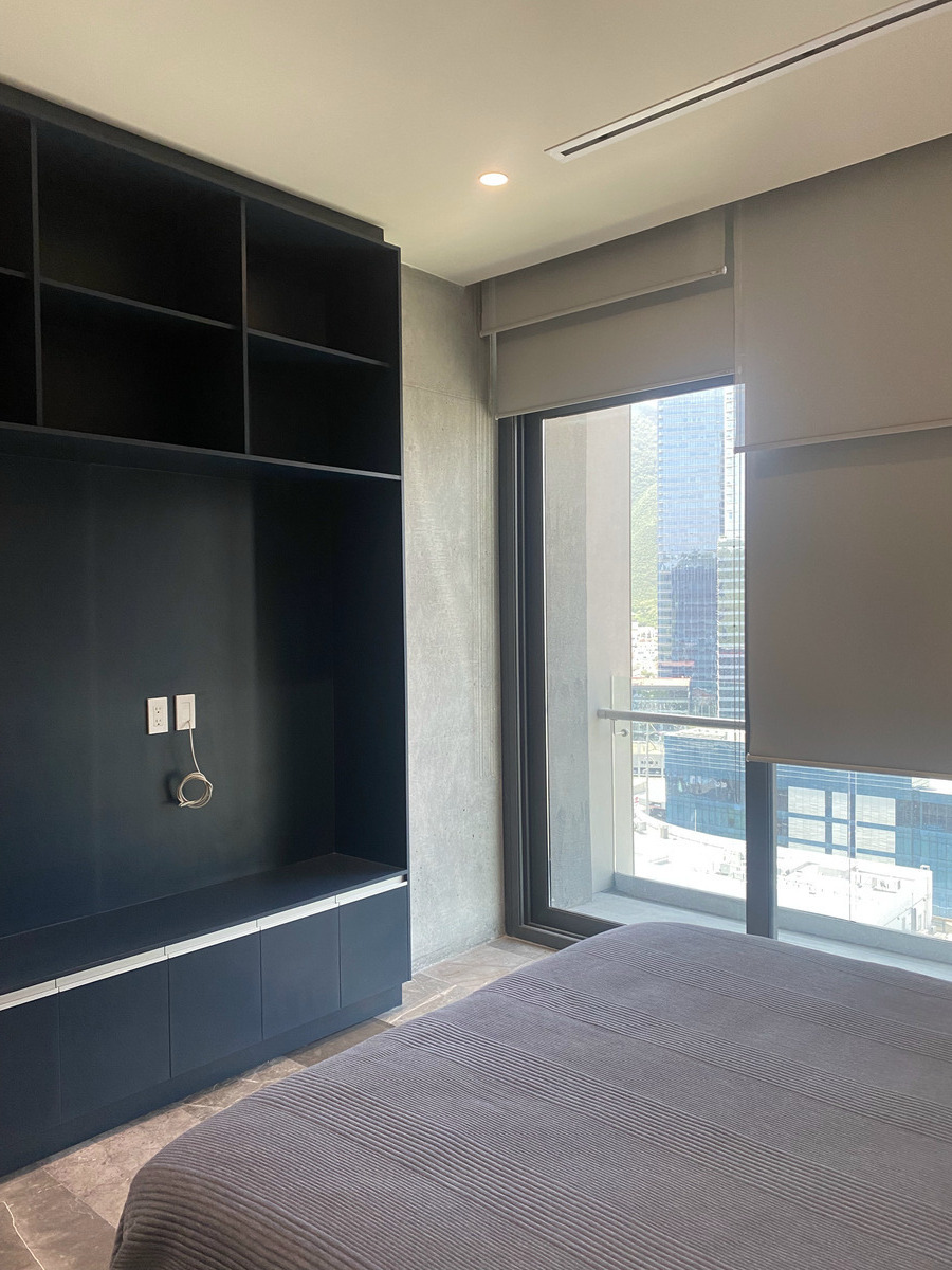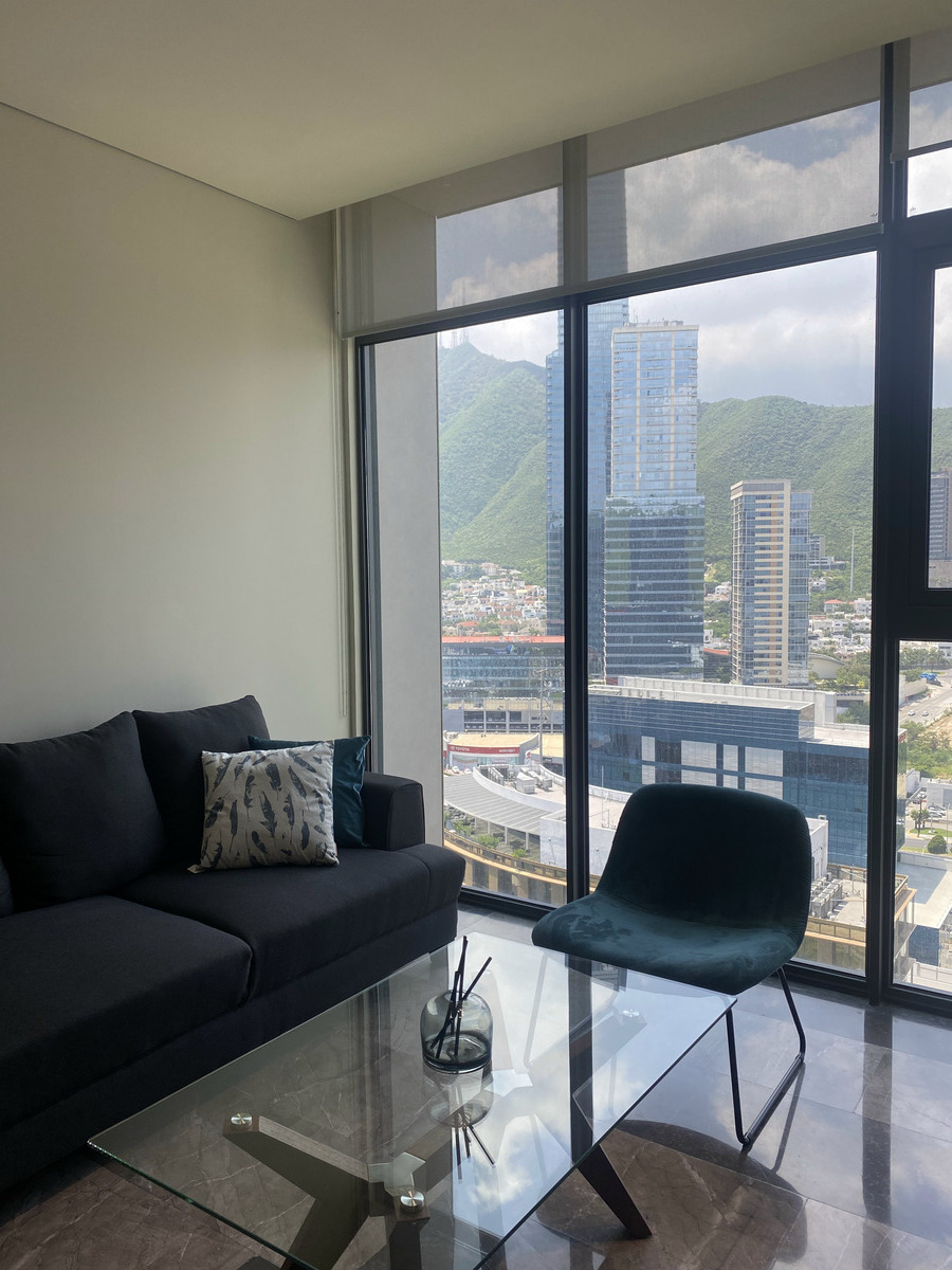 Incluye Cocina equipada, con parrilla, campana, minihorno, refrigerador y centro de lavado, sala, comedor para 4 personas, closet, canceles, clima, persiana translucida y Black out.