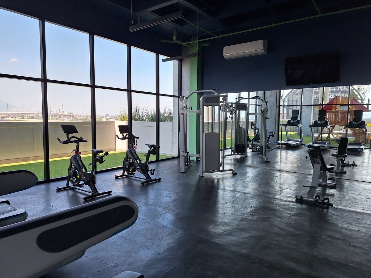 Fully furnished and equipped apartment. Excellent location in front of the Arena Monterrey, on the 10th floor of the building, overlooking Cerro de la Silla. It consists of a bedroom with a full bathroom. Living room, dining room, kitchen, laundry area. Equipped with refrigerator, stove, microwave oven, air conditioning, living room, dining room with chairs, televisions, complete bedroom. It has an exclusive parking space. Amenities: gym, grills, playroom, sports club, children's areas and games, coworking space, pet park. Direct deal only.