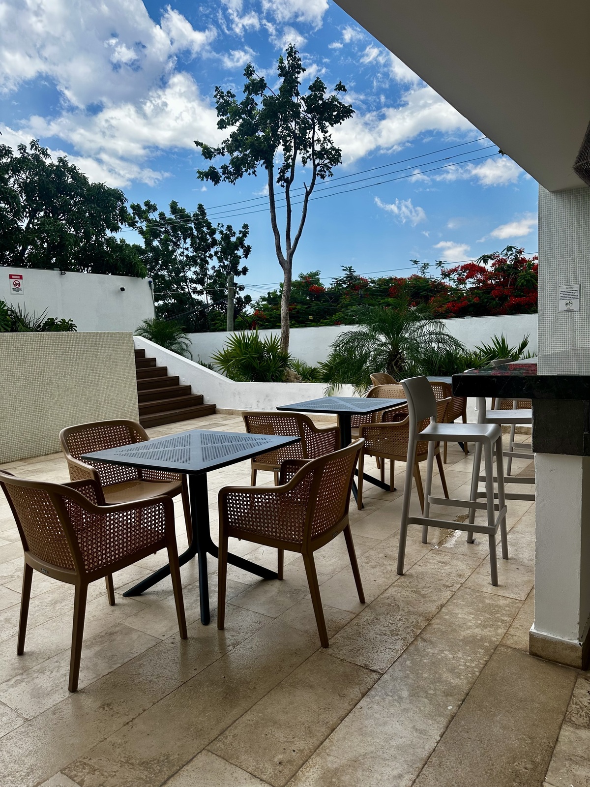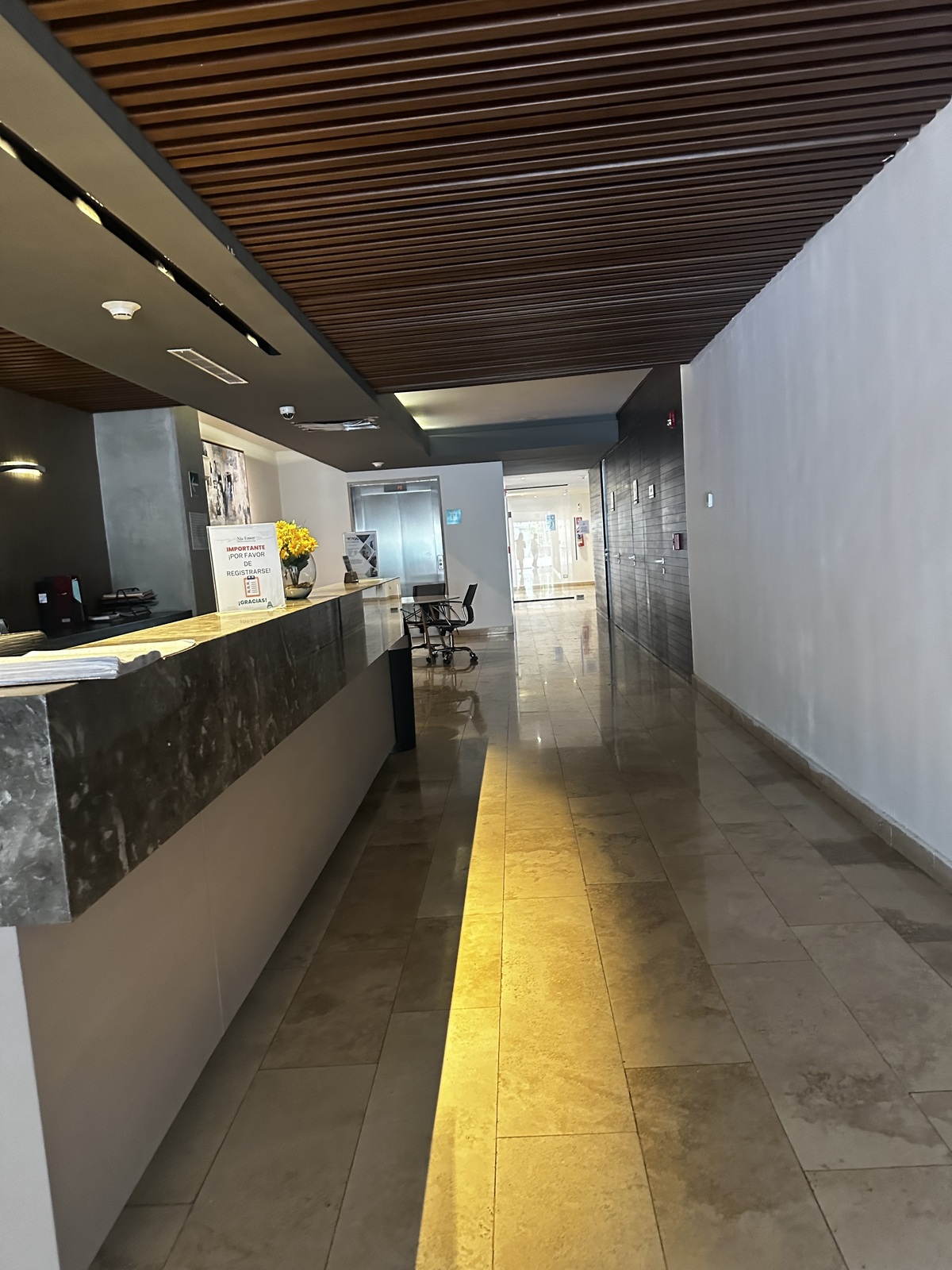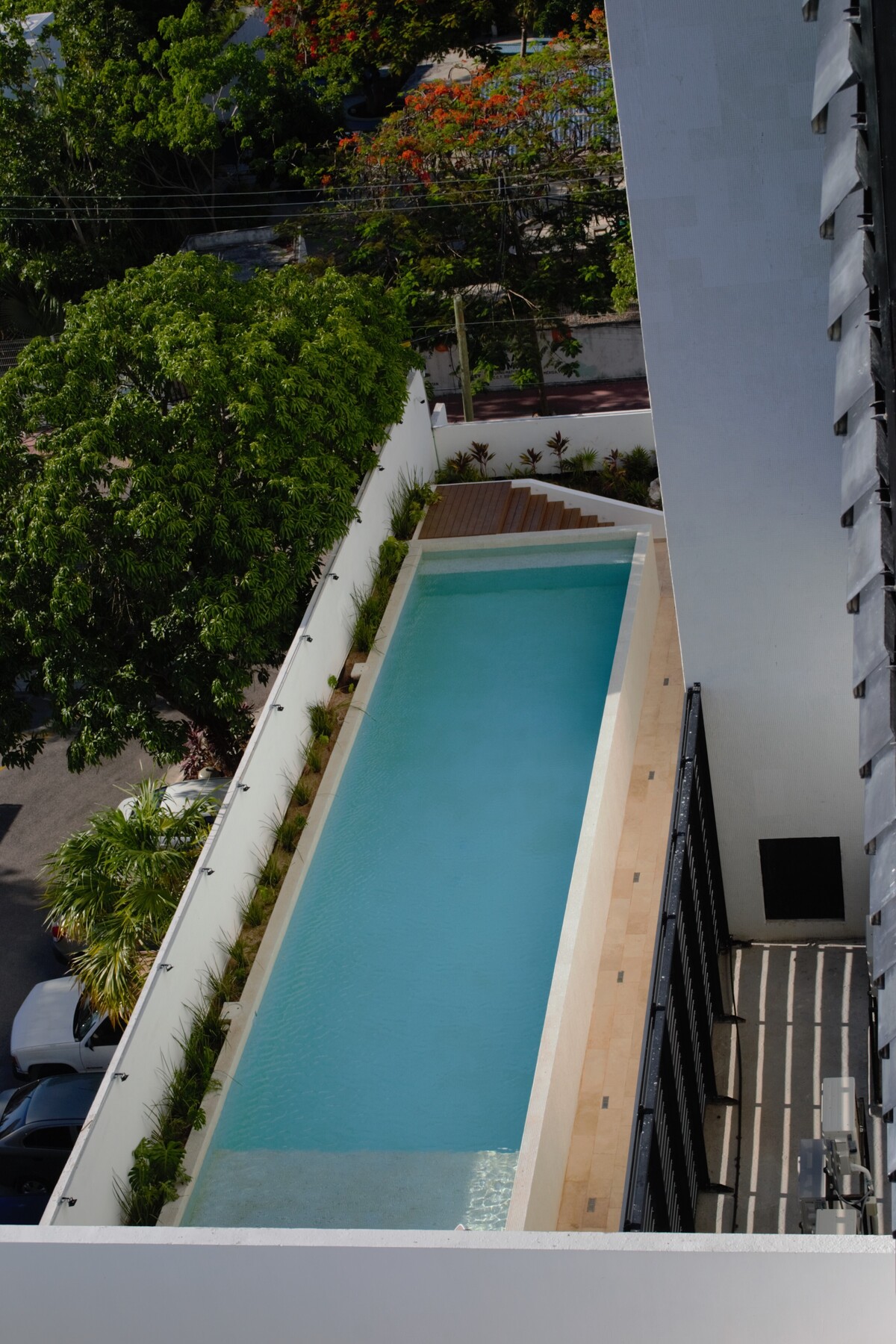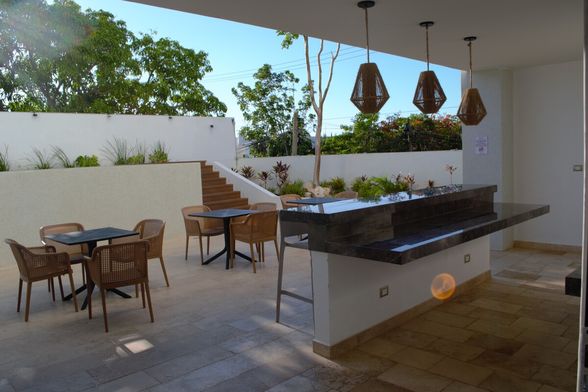Cuenta con amenidades como ; Lobby y recepcionista , seguridad 24 hrs, sala de juntas, área de comedor, área de copiado, terraza, bar, piscina.