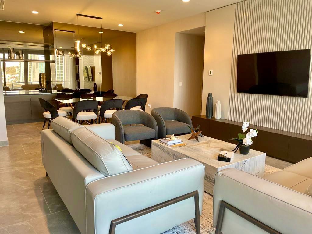 Cuenta con Área abierta que conecta con sala , comedor y balcón. Cuenta con cuarto de servicio y lavandería.