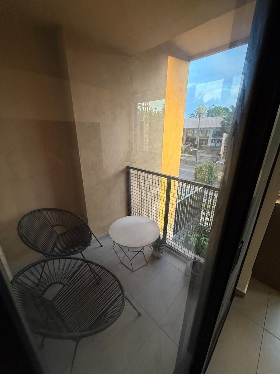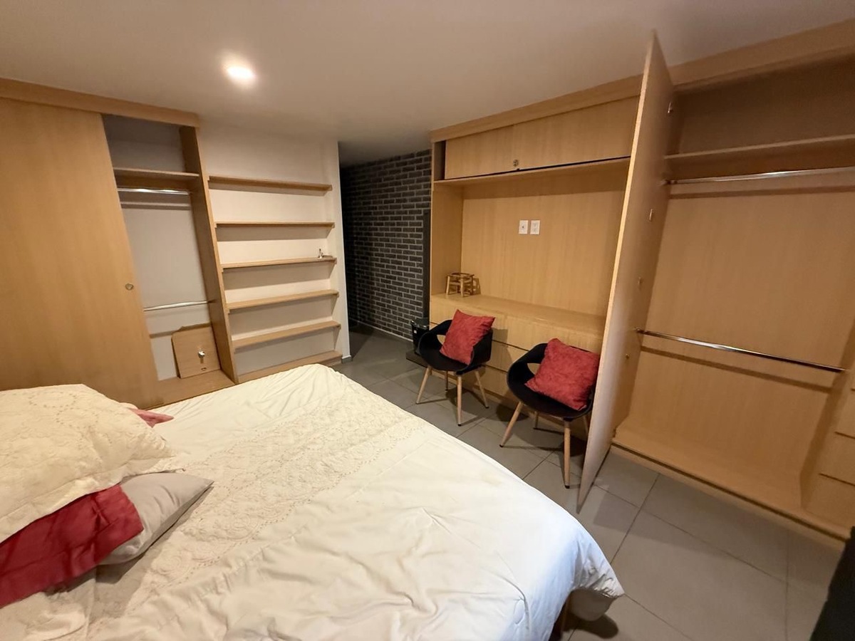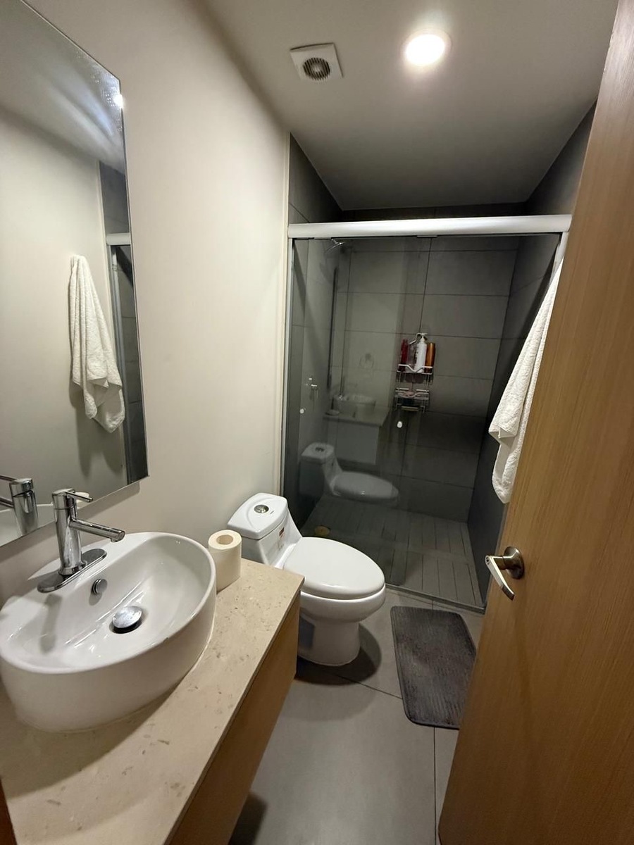 El departamento cuenta con espacio de sala y comedor, con aire acondicionado, cocina equipada, balcón y 2 habitaciones, la principal con aire acondicionado, cada una con su propio baño.