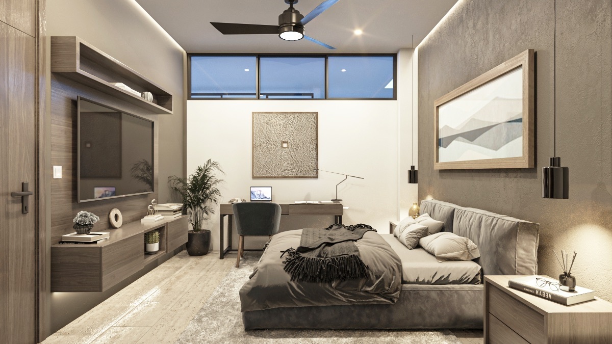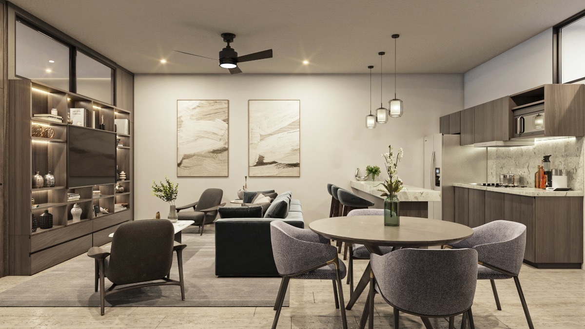 Modelo B: Estancia, cocineta, recámara principal con vestidor, baño completo y cuarto de lavado. (67m2)