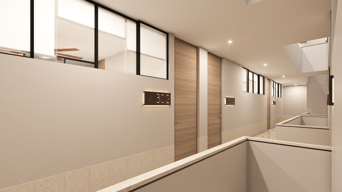 The 5-level building consists of apartments, parking, access lobby, rooftop with a game room, gym, barbecue area, and pool on a land area of approximately 990m2, located at 37 No. 330 on San Ramón Norte street, Mérida: Yucatán.