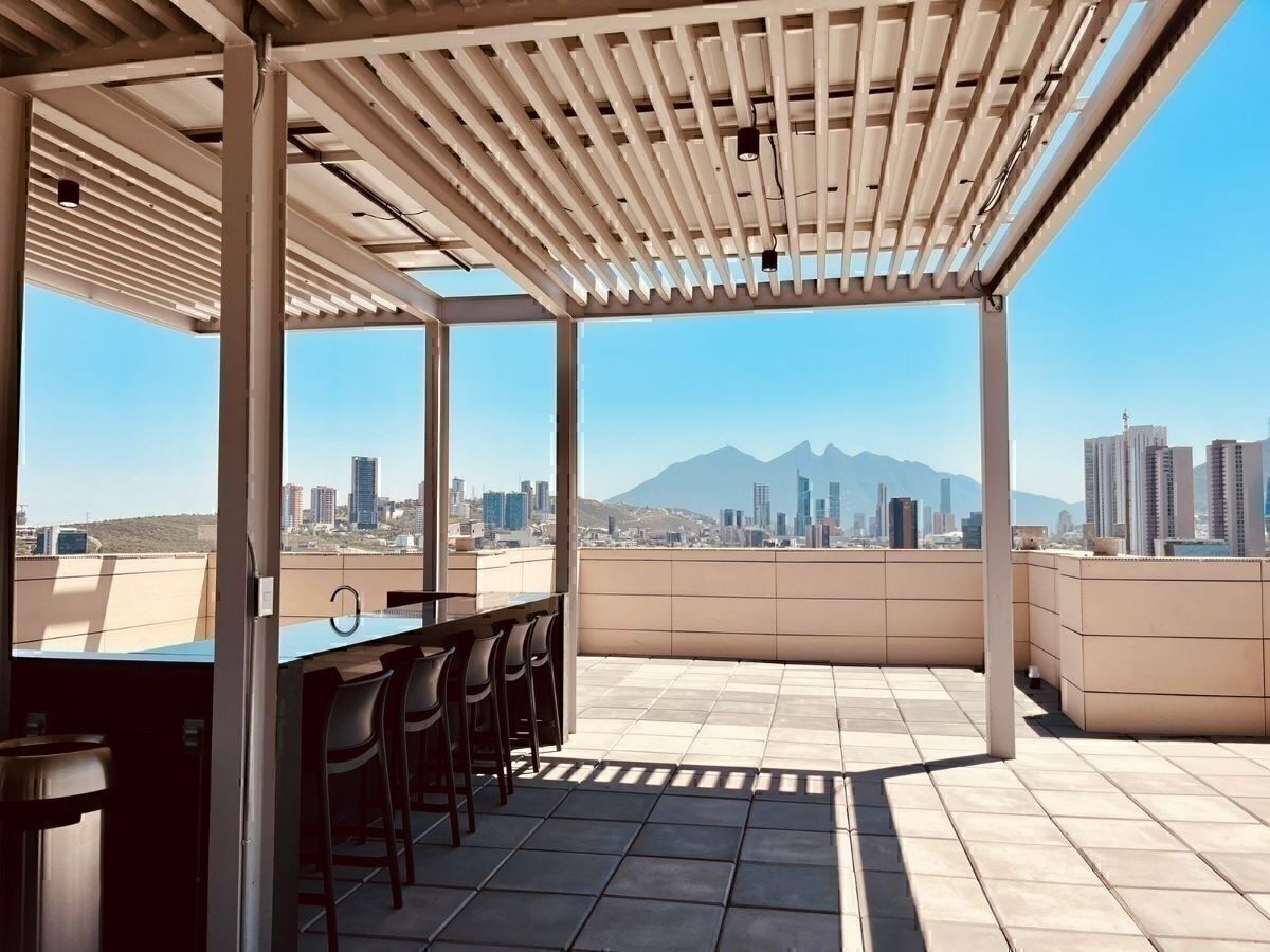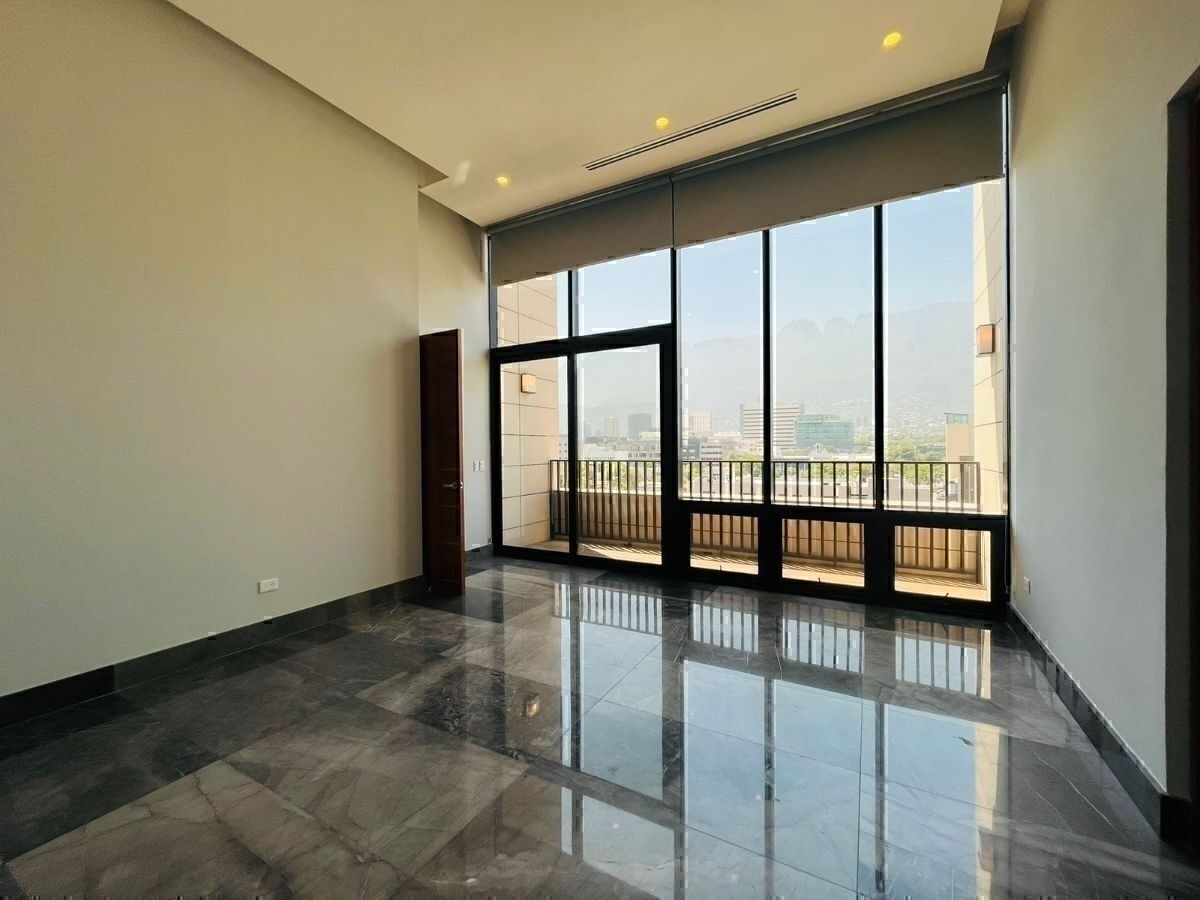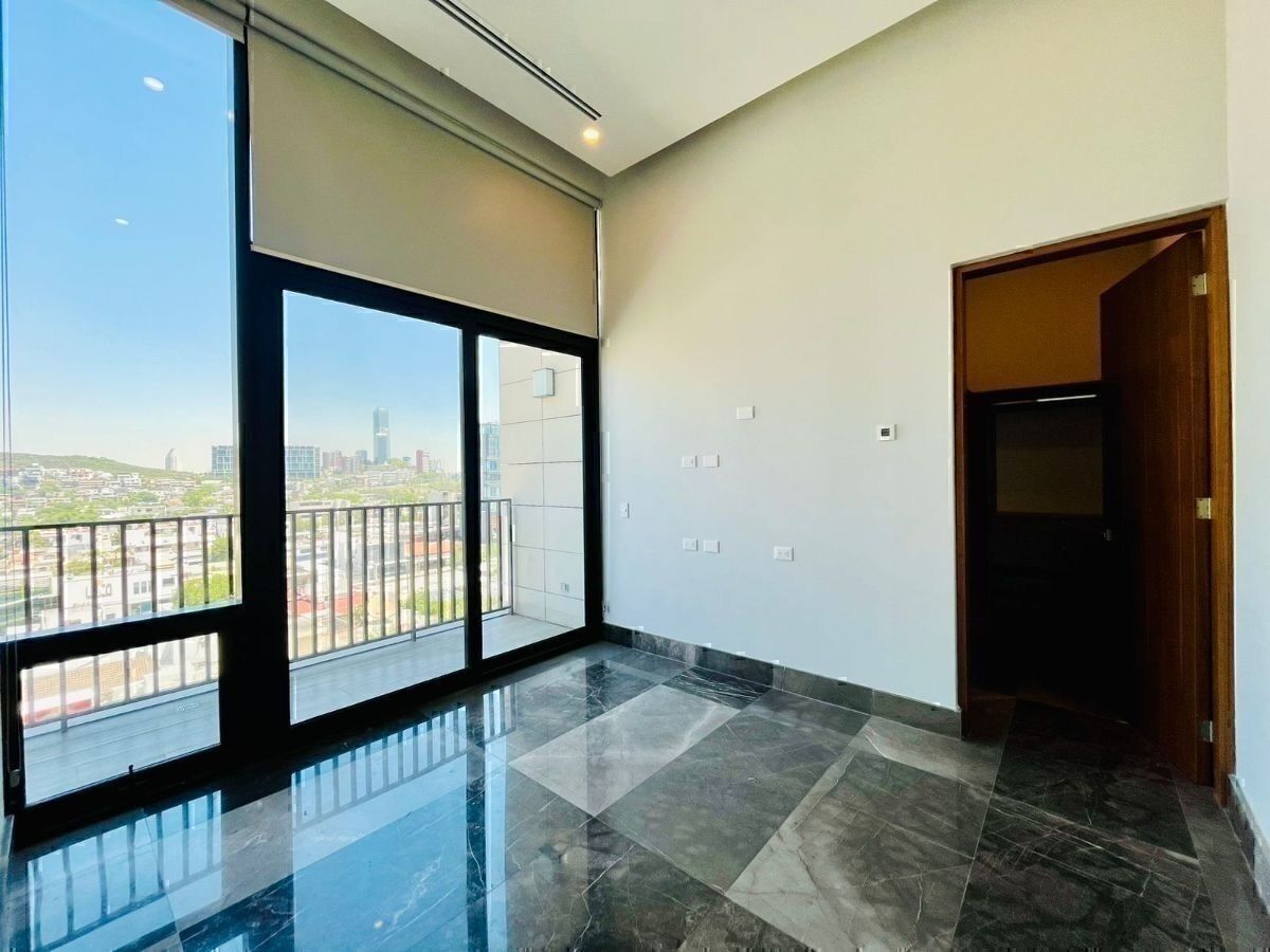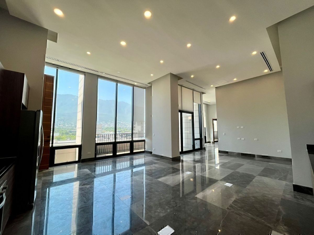Todo el departamento tiene vista a la sierra madre, los techos son de doble altura y ventanales de piso a techo, el area social es muy amplia con balcón muy grande, cuenta con sala de tv, baño de visitas, cuarto de servicio, área de lavandería, la cocina es totalmente equipada y tiene clima central seccionado.