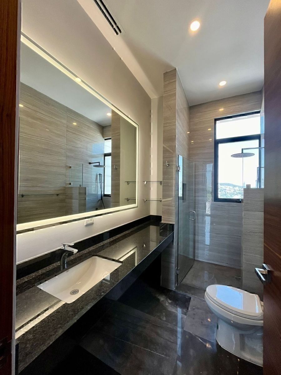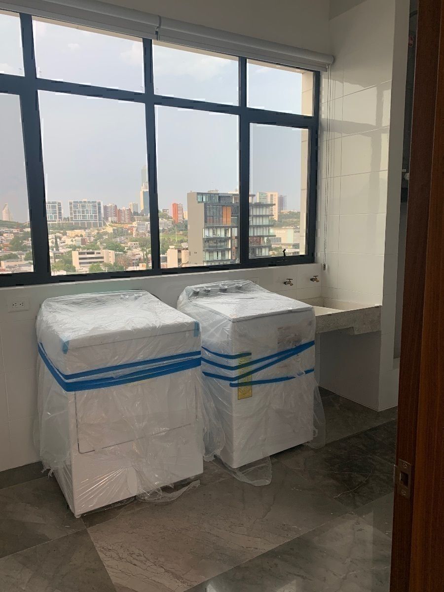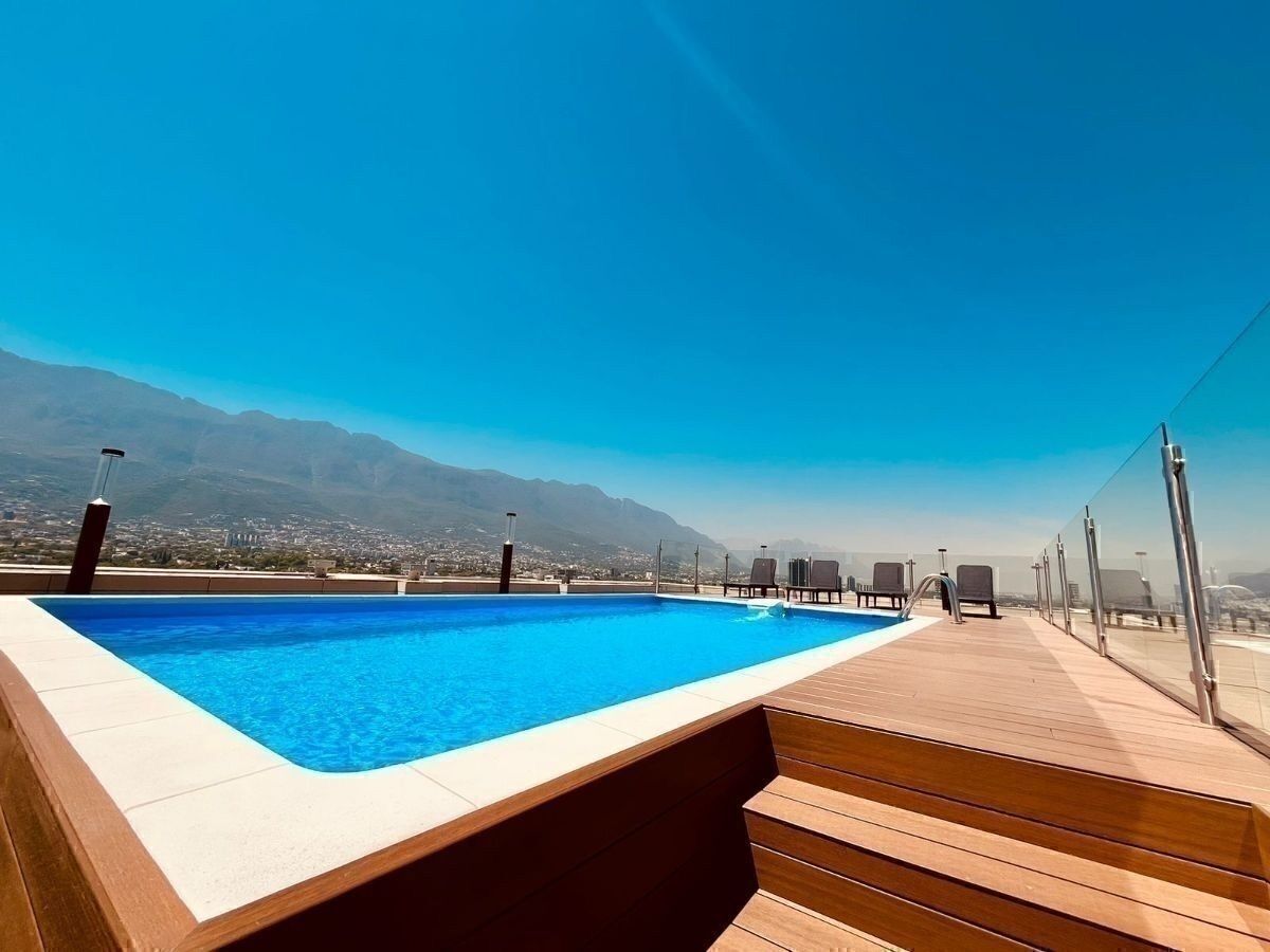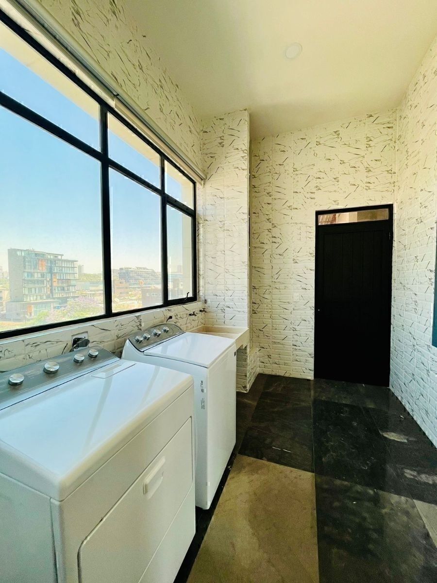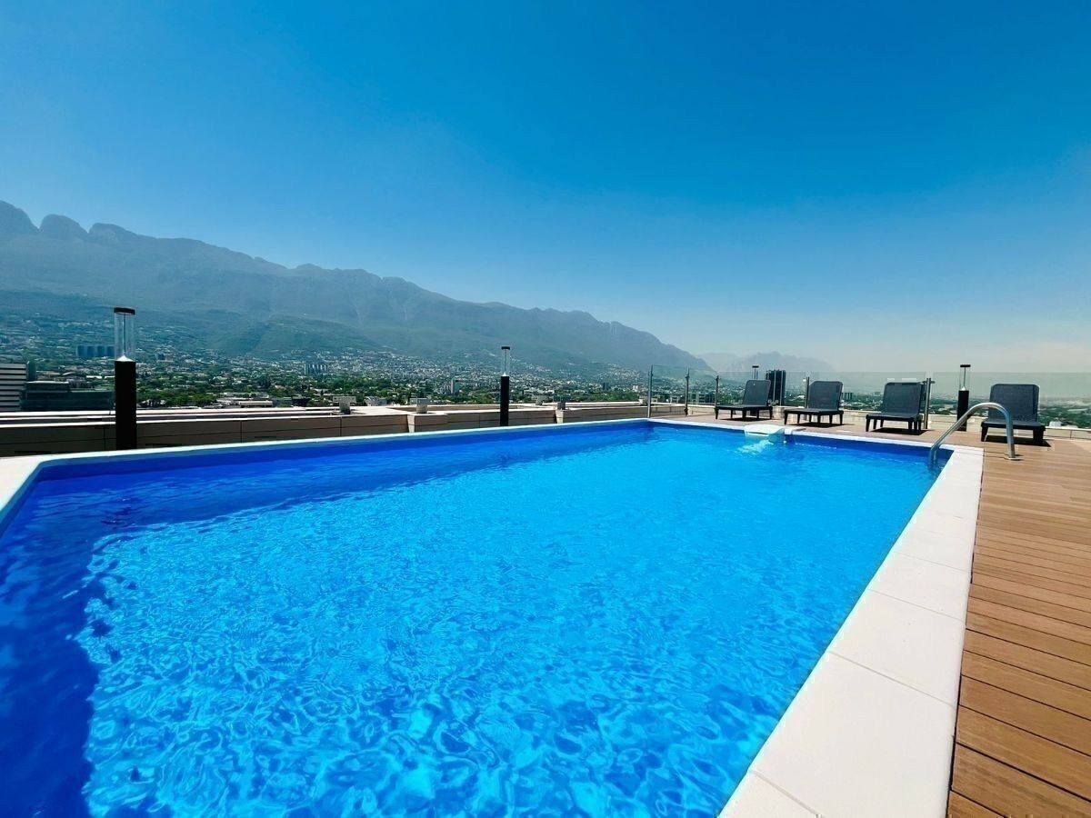 Todo el departamento tiene vista a la sierra madre, los techos son de doble altura y ventanales de piso a techo, el area social es muy amplia con balcón muy grande, cuenta con sala de tv, baño de visitas, cuarto de servicio, área de lavandería, la cocina es totalmente equipada y tiene clima central seccionado.