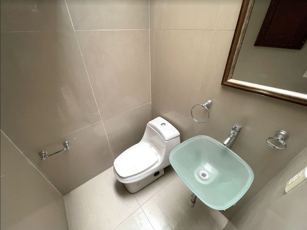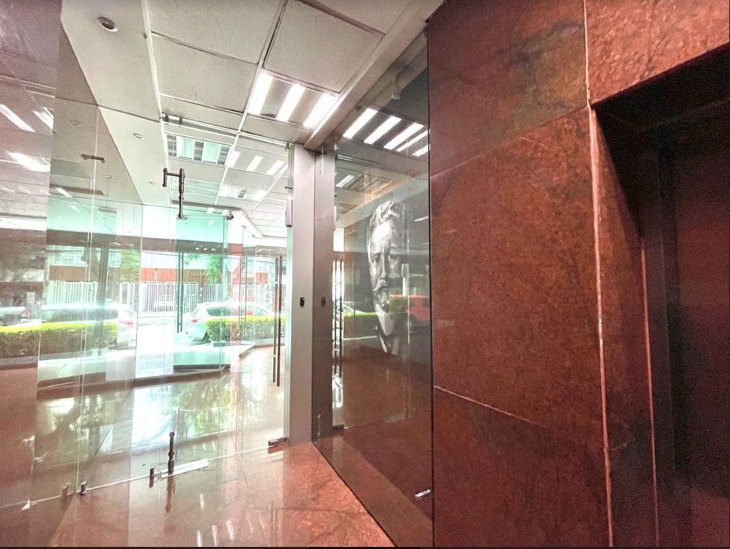 Apartment on the eighth floor with a terrace integrated into the social area, guest bathroom, fully equipped kitchen with refrigerator, one bedroom with a full bathroom, dressing room, and laundry area. It has one parking space, 24/7 security, and closed-circuit TV. The building is mostly offices.