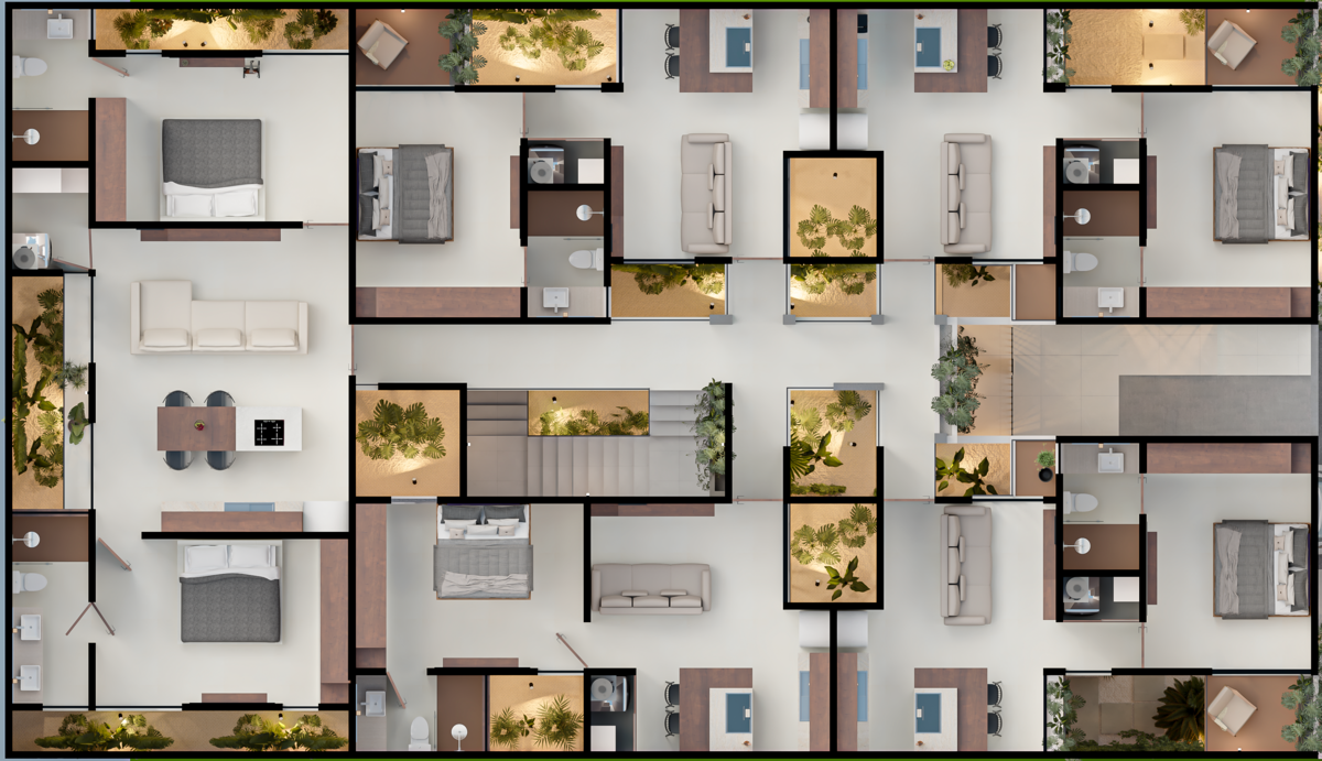 *This is a render that may vary from the actual result.*Complejo de 13 departamentos con diseño adaptado a la vida cotidiana, funcional y práctica. Distribuido en 3 niveles.