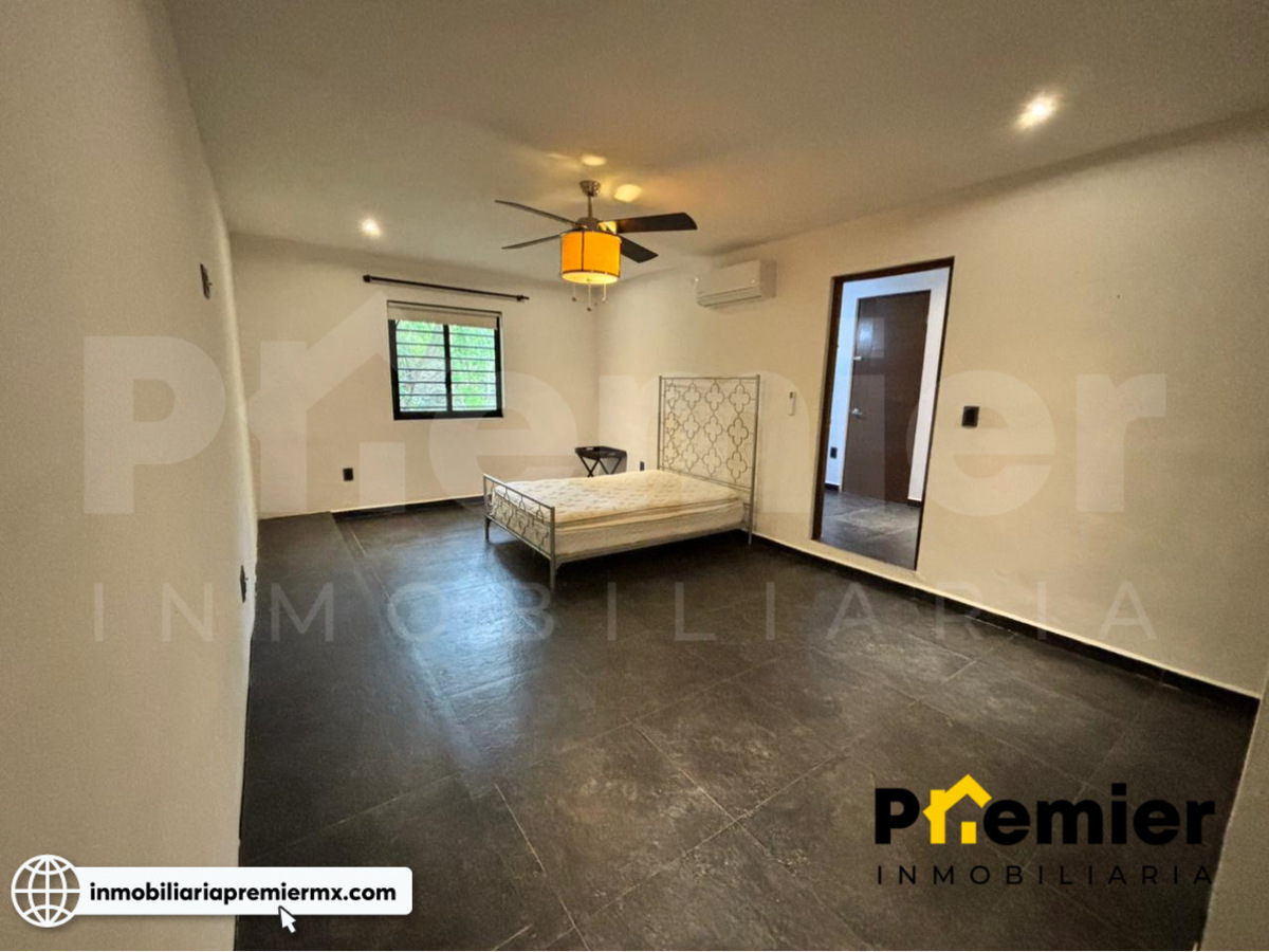 Recámara secundaria con cama matrimonial y acceso a baño completo que también funciona como baño de visitas.