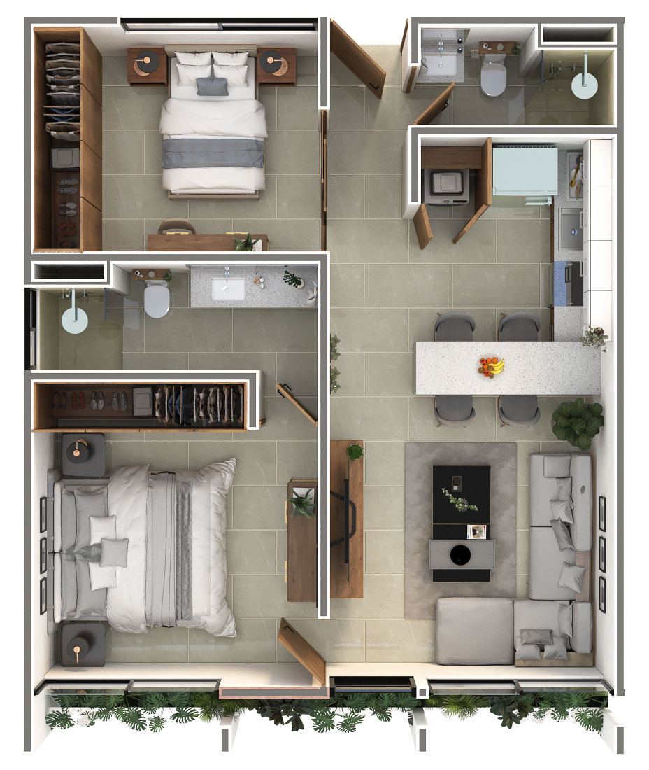 MODELO 2 RECÁMARAS/ 64MT2/ CAJÓN 12MT2