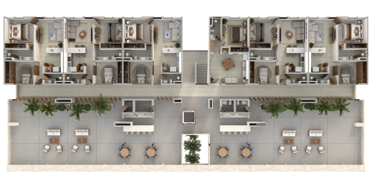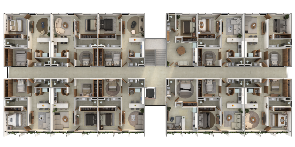 NIKORA es un complejo de departamentos que consta de 2 torres de 4 niveles, con 42 departamentos de 1 y 2 habitaciones, y amenidades, ubicado dentro de la Privada Fulgora Residencial, así como acceso a todas las amenidades exclusivas dentro de Fulgora Residencial.