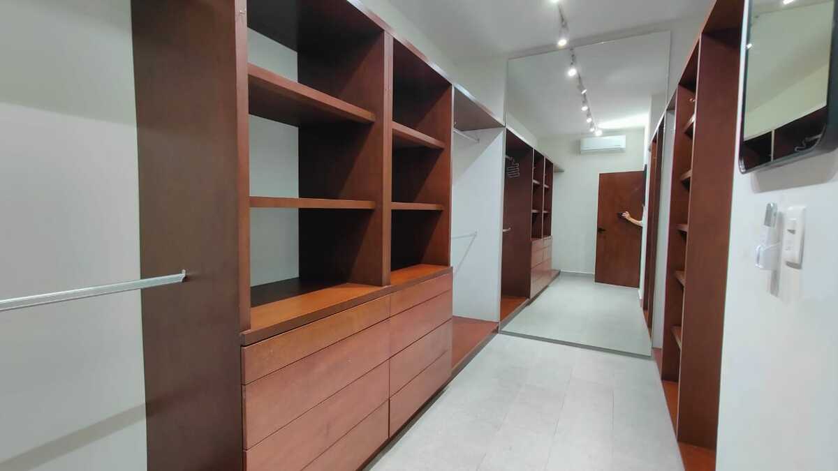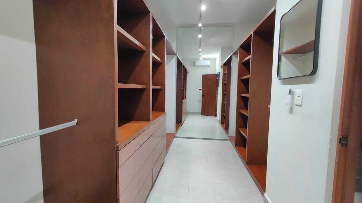 El departamento incluye 2 lugares de estacionamiento techado. Además, el inmueble está semi-amueblado y cuenta con línea blanca, aire acondicionado y acceso para personas con discapacidad.