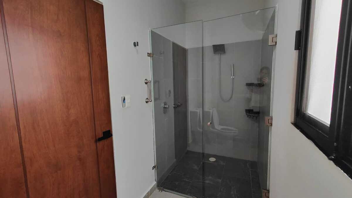El departamento tiene 3 recámaras con clósets, cuenta con 3 baños completos y un medio baño. Un estudio ofrece un espacio adicional para trabajar o estudiar desde casa.