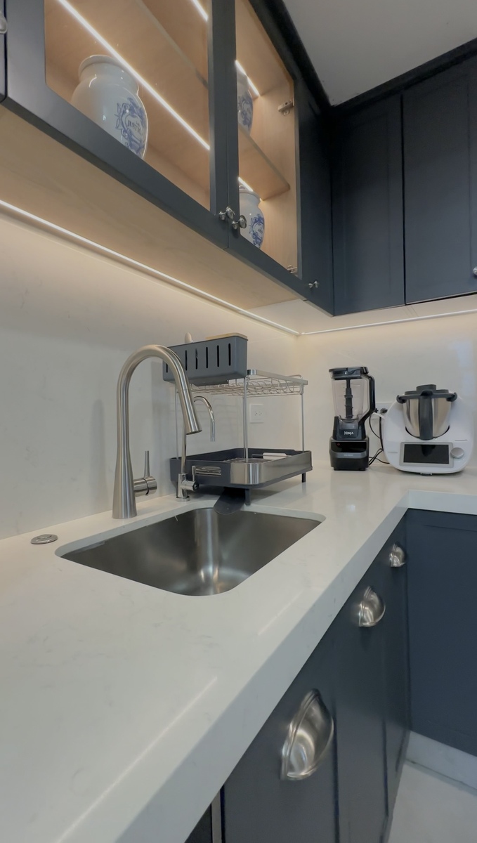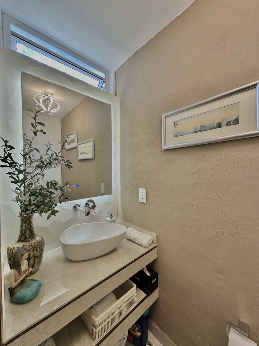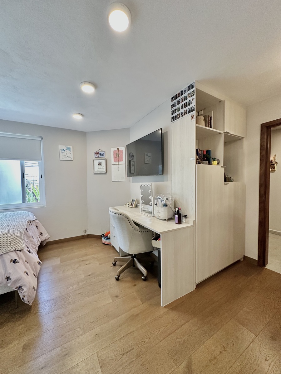 Cuenta con 3 recámaras, 3 baños completos y medio baño para visitas. Cada recámara tiene baño propio y amplio clóset. Cocina integral de diseño contemporáneo con cubiertas y splash de mármol y mobiliario en tonos gris grafito.