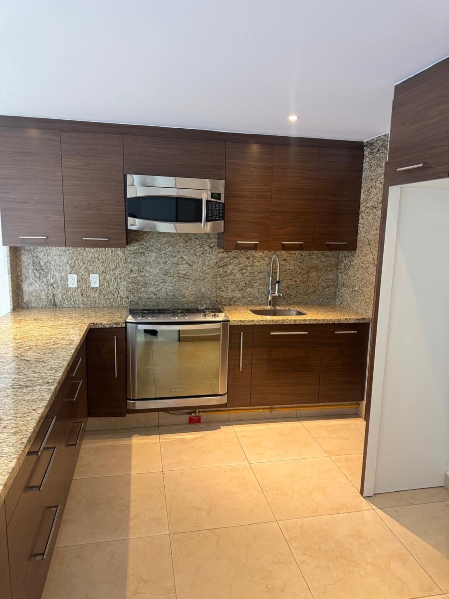 3 recamaras con baño cada una, cocina abierta, cuarto de lavado, 2 estacionamientos, vigilancia las 24 horas
