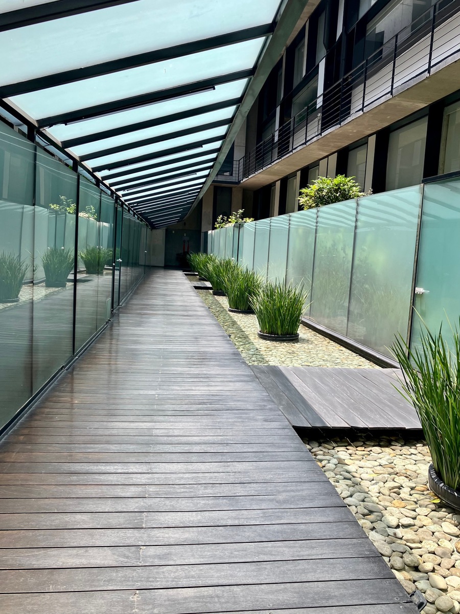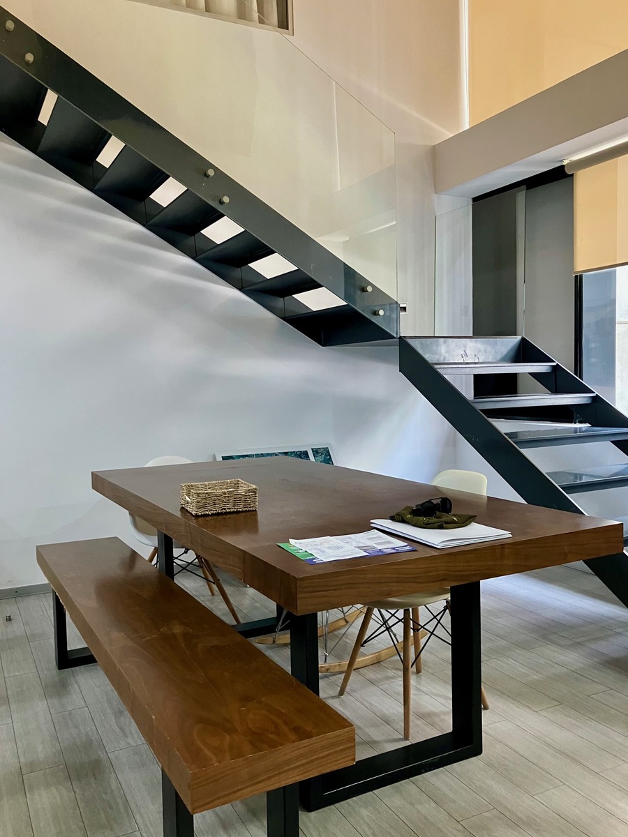 Magnificent apartment developed on two floors, with modern architecture just steps from the Garden of the Republic of Lebanon and the Scotiabank tower. The lower floor is practically open, and we find the living area, the kitchen with a large bar that separates it from the dining area. Closed laundry room and a half bathroom for guests. Going up the communication stairs, we find the family area flanked by each of the two bedrooms of the property. Each has its own bathroom with a shower room. The master bedroom has a walk-in closet and the secondary one has a closet. Two covered parking spaces, one behind the other. In common areas, there is a covered area that houses a 15-meter swimming lane approximately, with some cardiovascular equipment on the side (elliptical, treadmill, and stationary bike). 24/7 security. The furniture shown in the photos is for illustrative purposes only. It is rented UNFURNISHED. The maintenance fee is included in the rent. NO PETS. The habitable footage shown in the listing is approximate. It is being finished renovating these days. Visit it!Magnífico departamento desarrollado en dos plantas, de moderna arquitectura a unos pasos del Jardín de la República de Líbano y de la torre Scotiabank. La planta de abajo es práticamente abierta y encontramos el área de la estancia, la cocina con una amplia barra que la separa del área del comedor. Cuarto de lavado cerrado y medio baño para visitas. Subiendo las escaleras de comunicación, nos encontramos con el área de family que está flanqueada por cada una de las dos recámaras del inmble. Cada una tiene su propio baño con cuarto de regadera. La Ppal con vestidor y la secundaria con closet. Dos lugares de estacionamiento techado, uno atrás del otro. En áreas comunes se cuenta con un área techada que alberga un carril del nando de 15 mts aprox. con unos aparatos de cardiovascular a un costado (elíptica, caminadora y bici fija). Vigilancia 24/7. Los muebles que aparecen en las fotos son de carácter meramente ilustrtivo. Se renta SIN MUEBLES. La cuota de mntto está incluida dentro de la renta. NO MASCOTAS. El metraje habitable mostrado en la ficha es aproximado. Se está terminando de renovar en estos días. Visítelo!