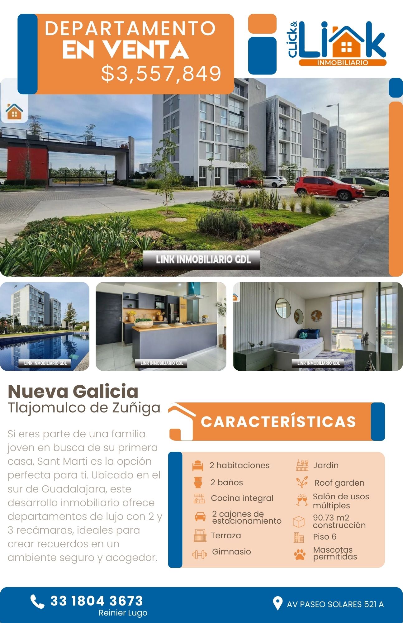 Reinier LugoUbicado en Nueva Galicia Residencial, acceso a importantes zonas de interés y muy cerca de escuelas, Hospitales, plazas y centros comerciales como: Universidad ITESO, Hospital Puerta de Hierro Su, Punto Sur y Galerías Santa Anita. Accesos rápidos a las avenidas y periférico.