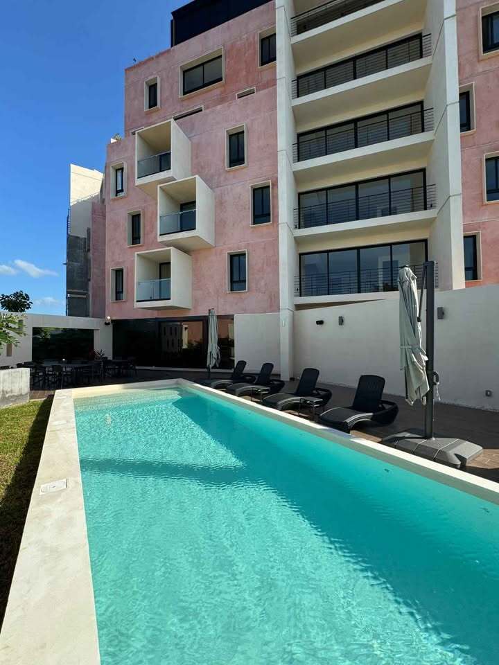 Departamento de una recámara en renta en una complejo privado en la zona de Santa Gertrudis Copo. En una zona de alta plusvalía, al norte de Mérida, Yucatán. Cerca