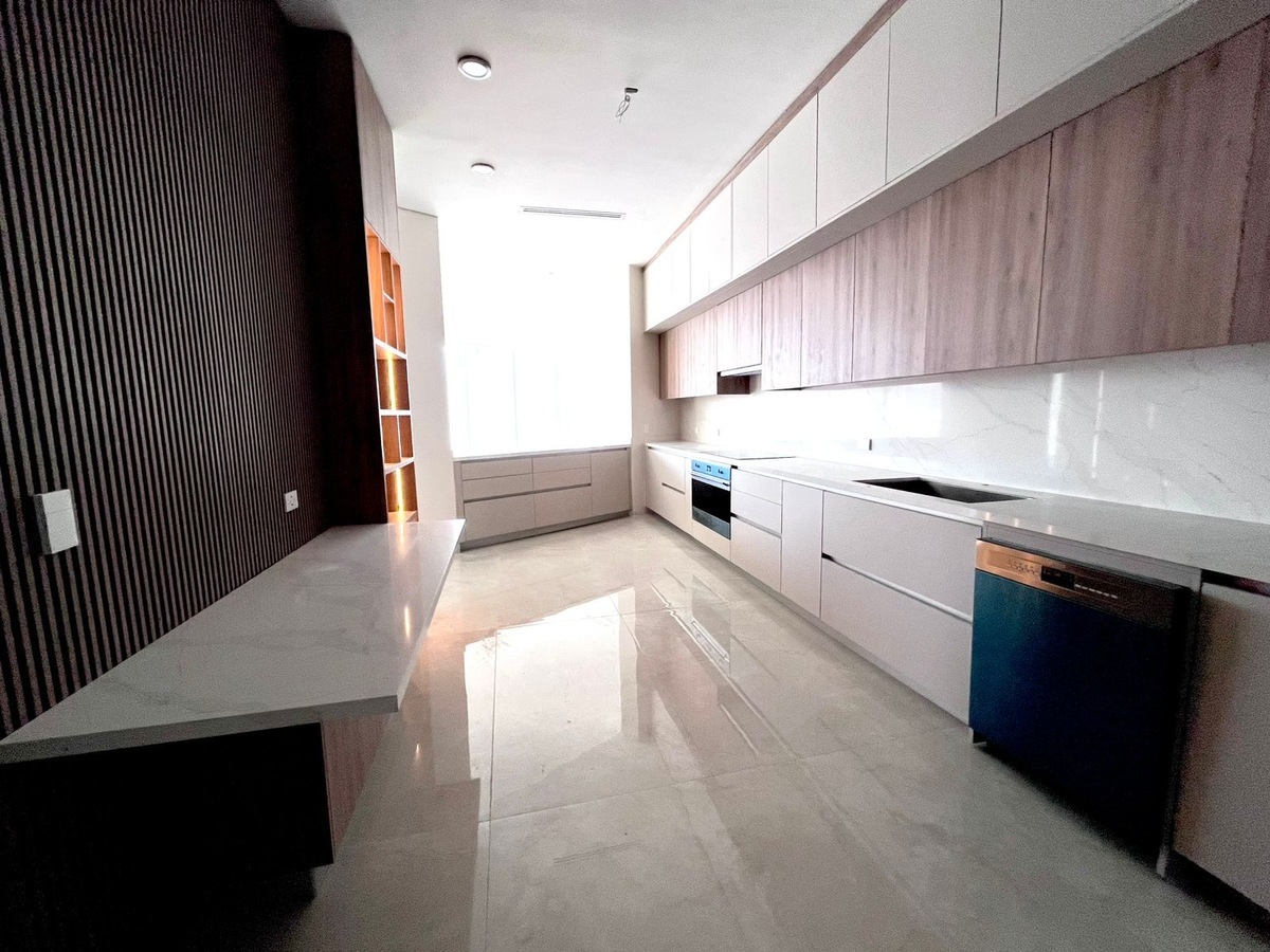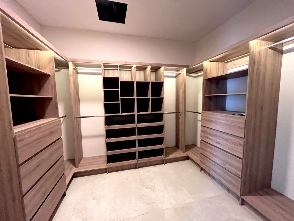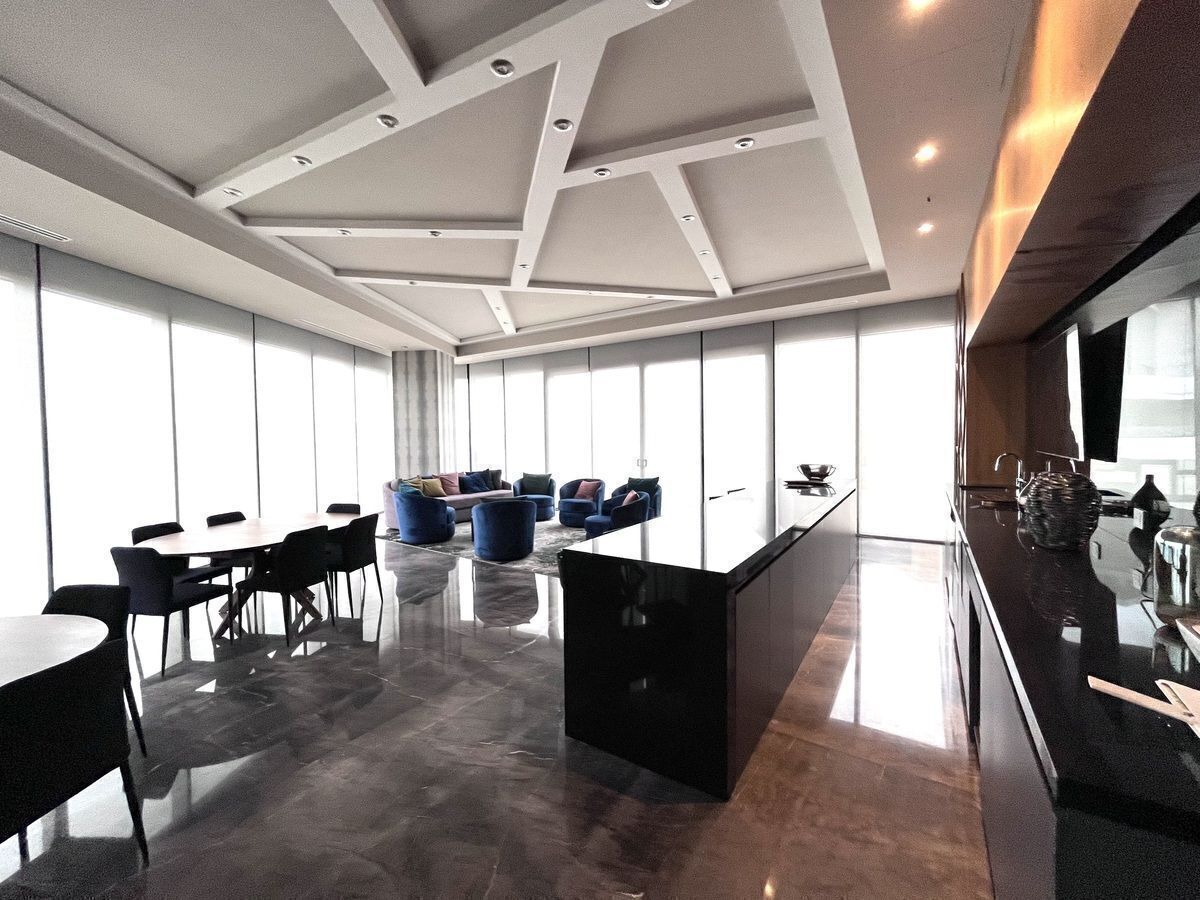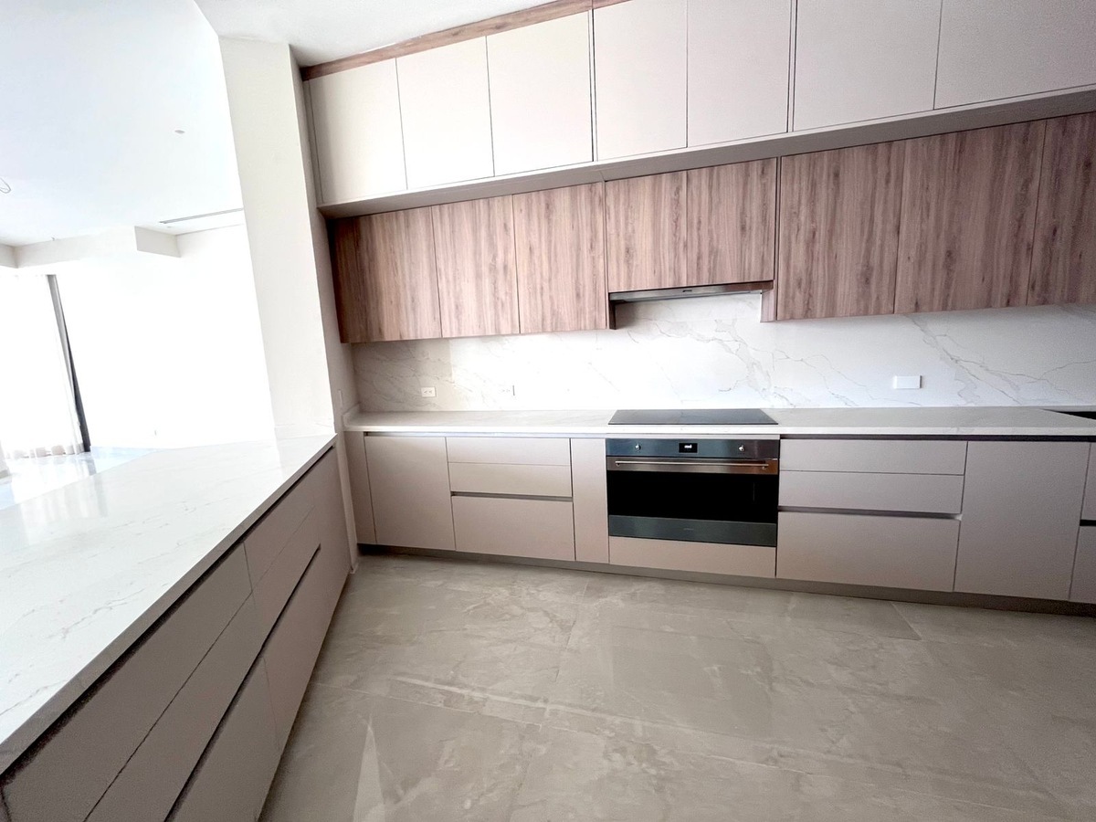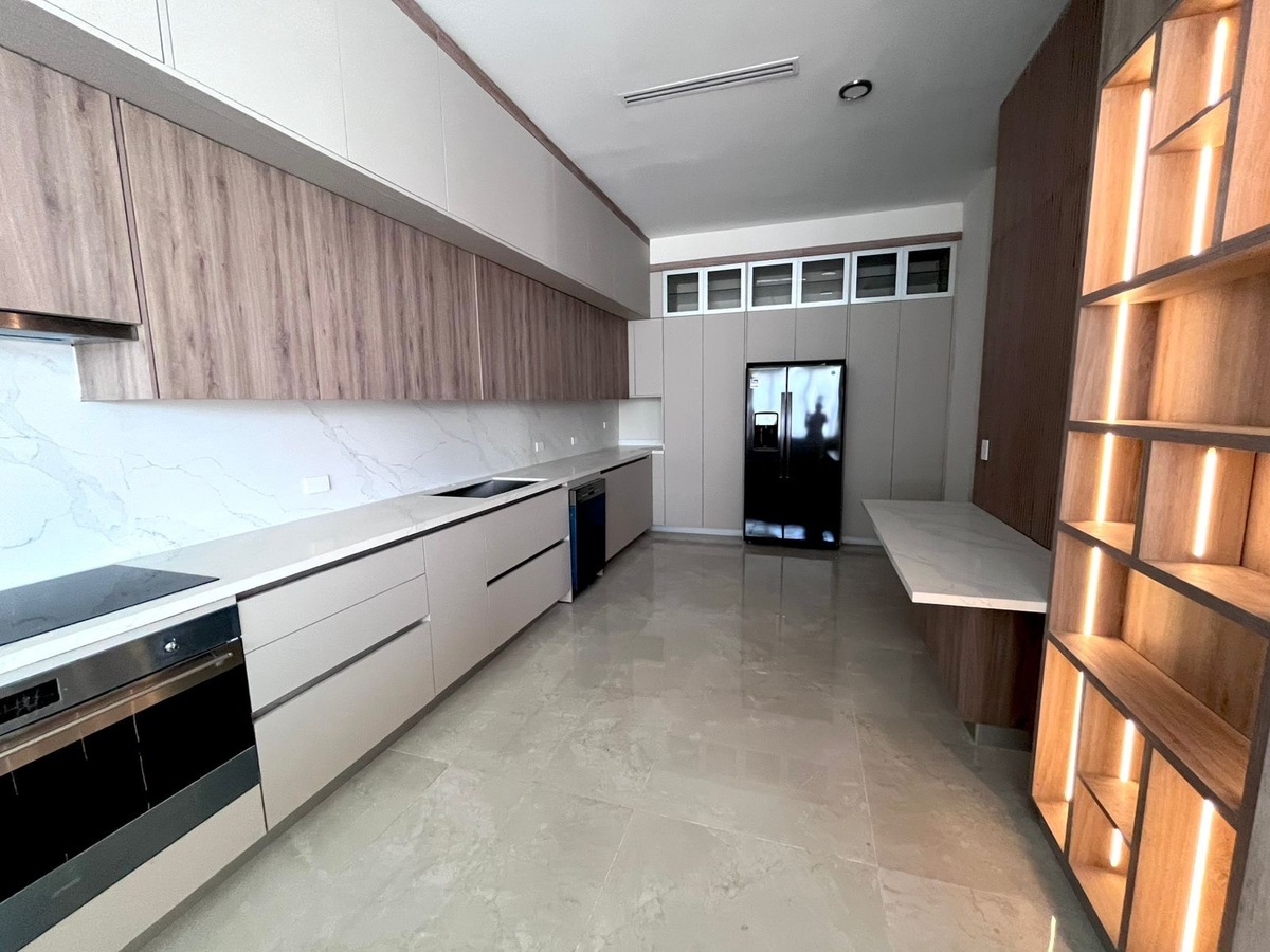 Cuenta con 3 recámaras cada una con baño vestidor, sala de tv, área de sala comedor muy espaciosa, cocina equipada con electrodomésticos de alta gama, cuarto de servicio, acabados de lujo como pisos de mármol y cocina de marca reconocida.