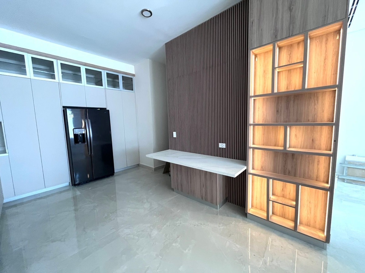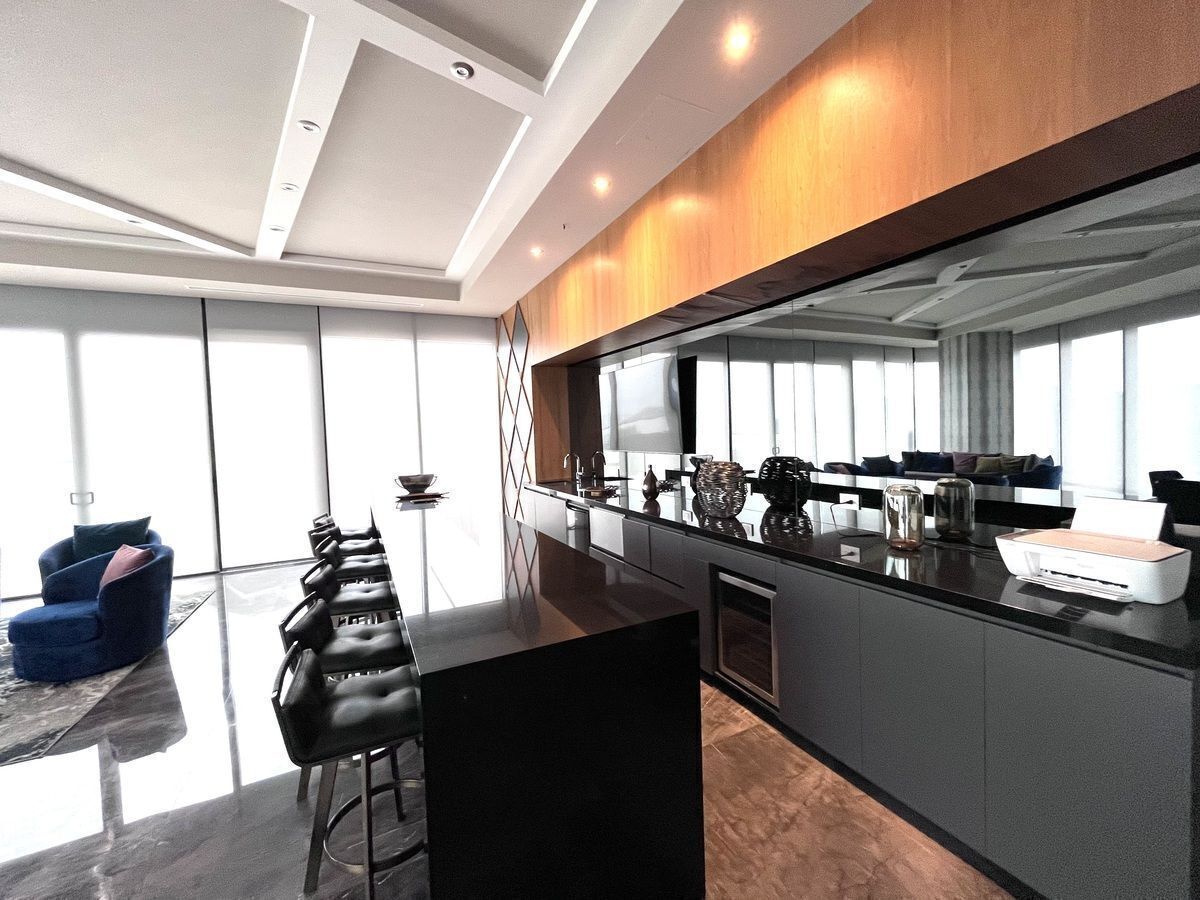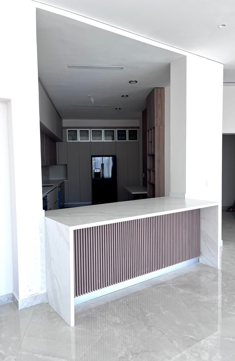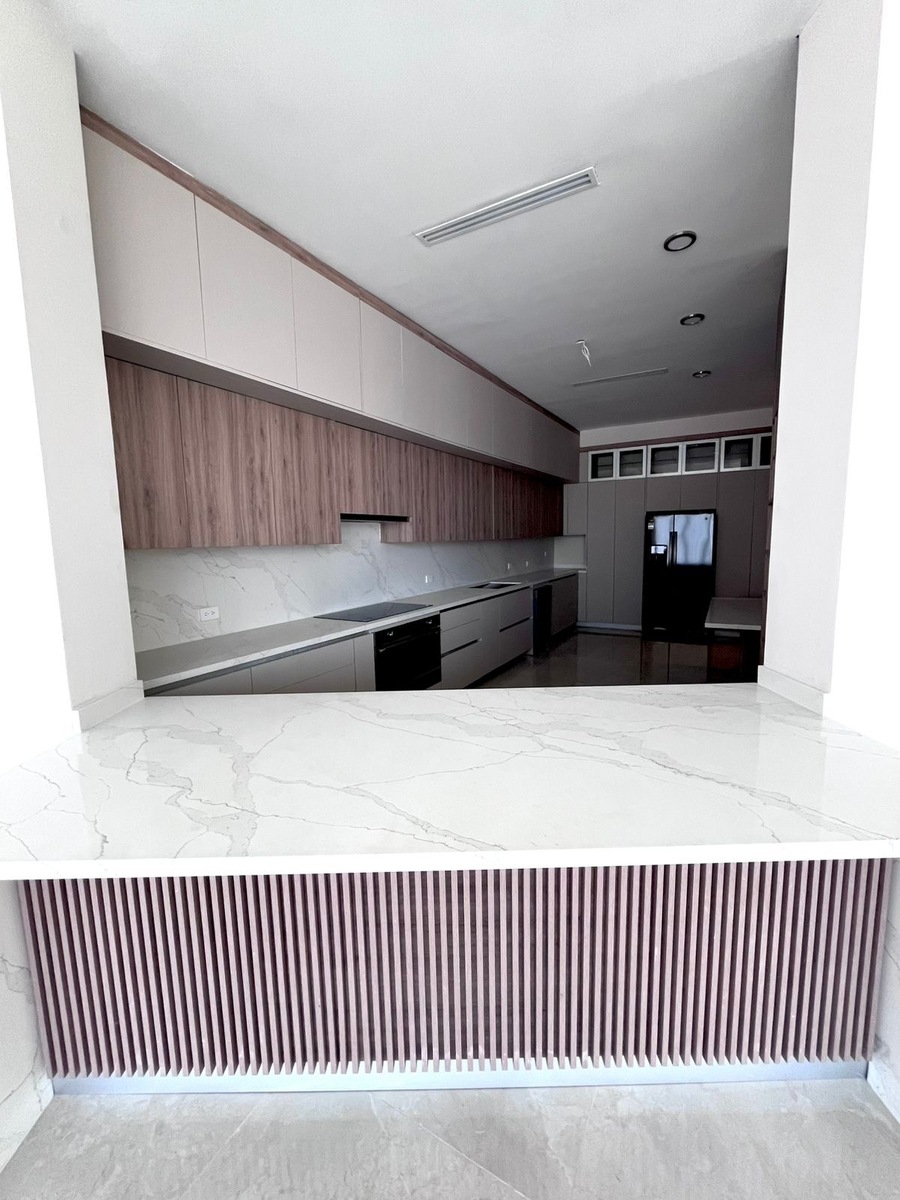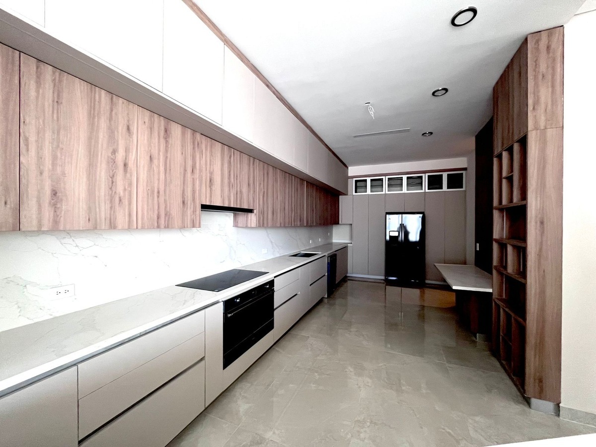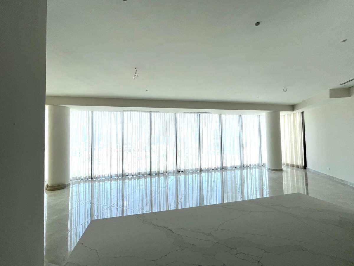 Cuenta con 3 recámaras cada una con baño vestidor, sala de tv, área de sala comedor muy espaciosa, cocina equipada con electrodomésticos de alta gama, cuarto de servicio, acabados de lujo como pisos de mármol y cocina de marca reconocida.