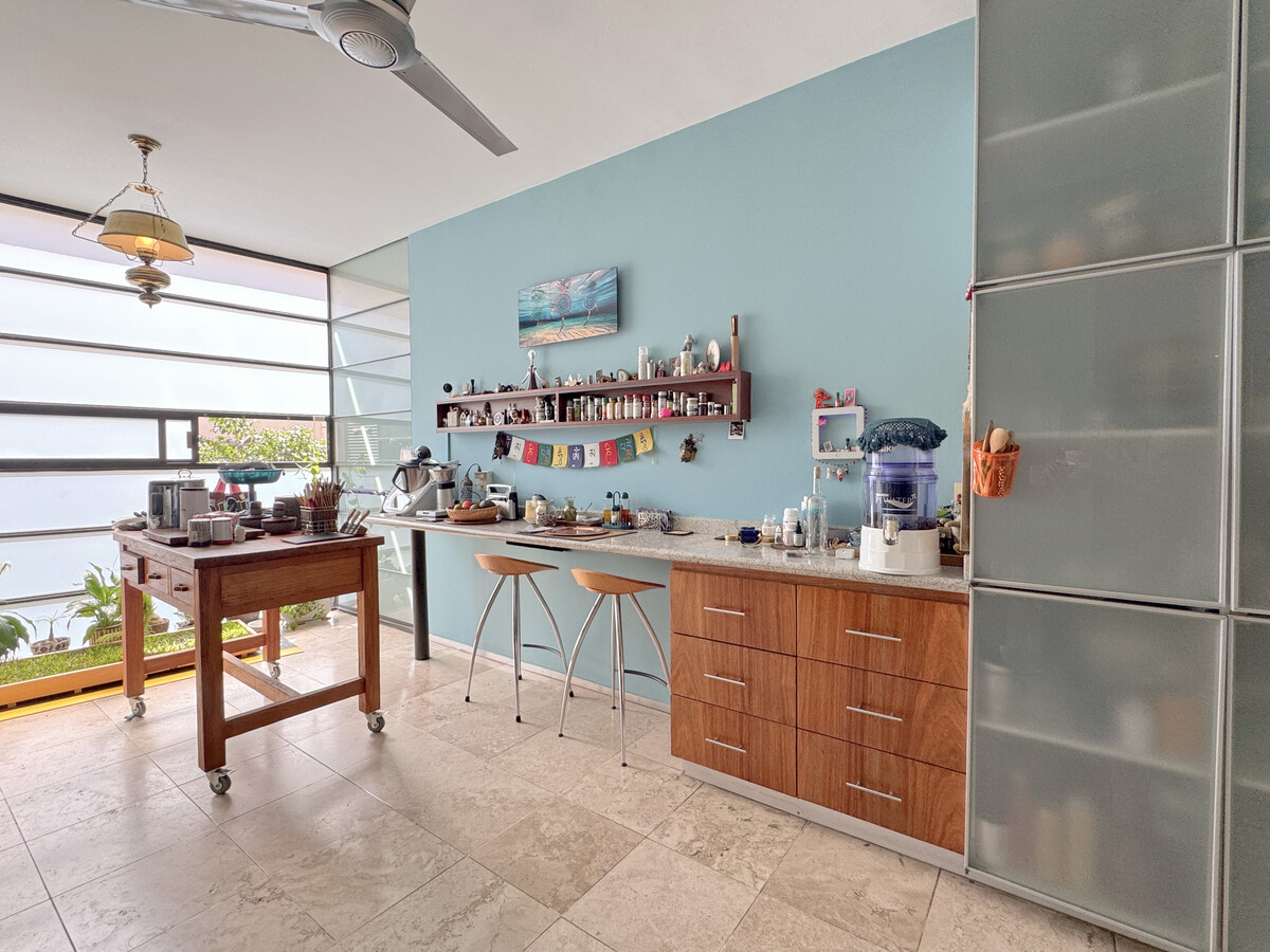 El departamento, con 250 m² de superficie y una impresionante doble altura, ofrece una sensación de amplitud y verticalidad poco común en la zona. La planta principal integra de forma natural la sala, comedor y cocina, creando un ambiente cálido y funcional, ideal para quienes valoran el diseño y la comodidad. Los amplios ventanales con doble cristal garantizan aislamiento acústico y térmico, mientras que el sistema de iluminación y calefacción hidráulica aporta confort y eficiencia durante todo el año.