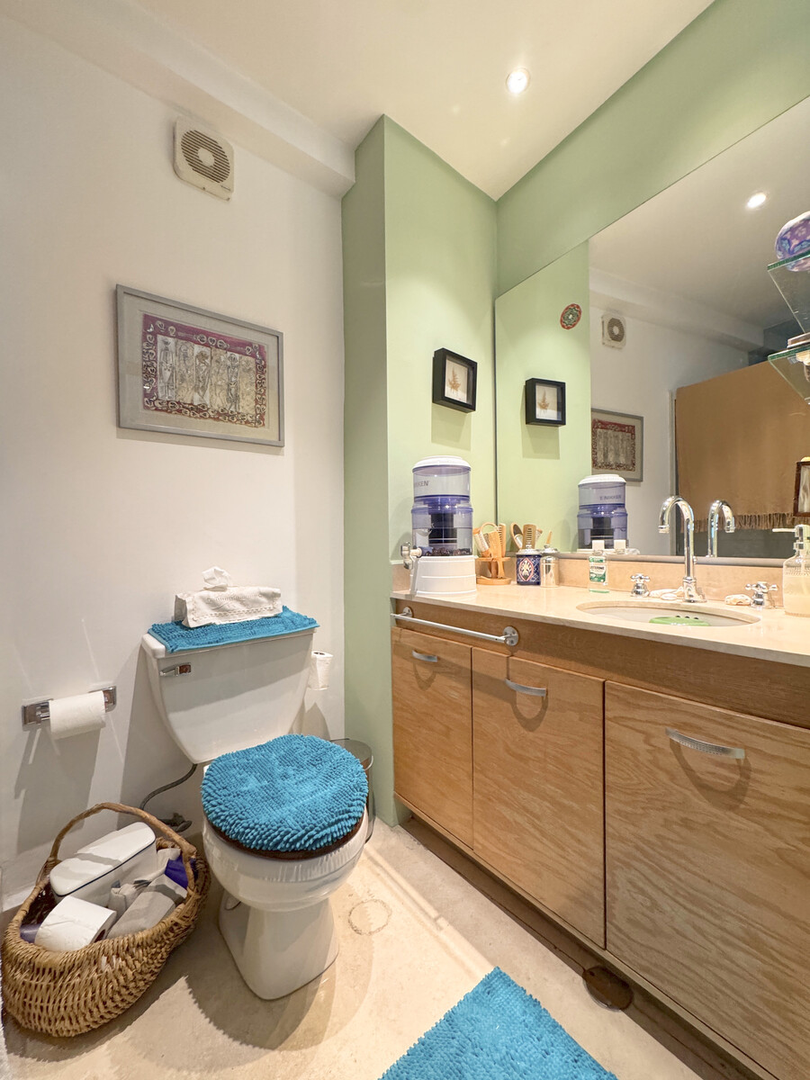 En la zona privada se encuentran dos recámaras, cada una con su propio baño, y la principal cuenta con jacuzzi y vapor, un verdadero santuario de bienestar dentro del hogar. El departamento también dispone de cuarto de servicio o bodega, así como dos lugares de estacionamiento amplios (2.5 x 5.0 m cada uno).