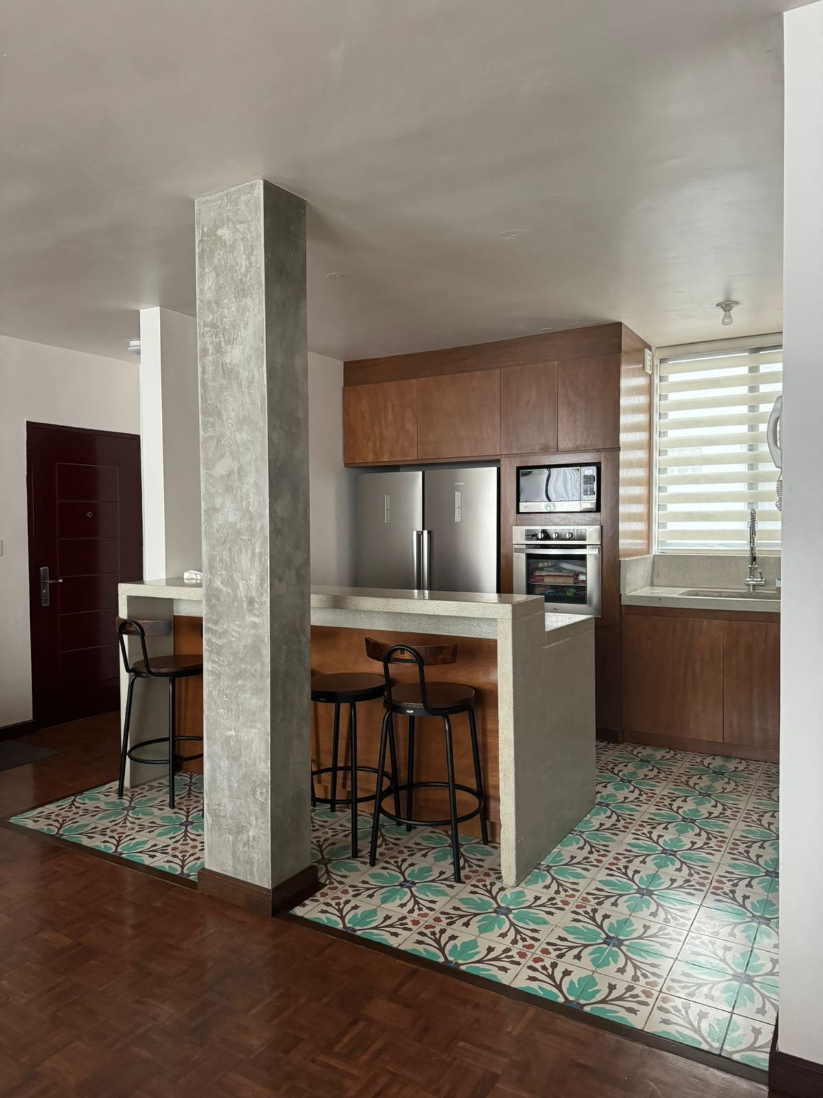 - Cocina integral equipada, barra desayunadora, parrilla, horno convencional y almacenamiento inteligente con cajones modernos.