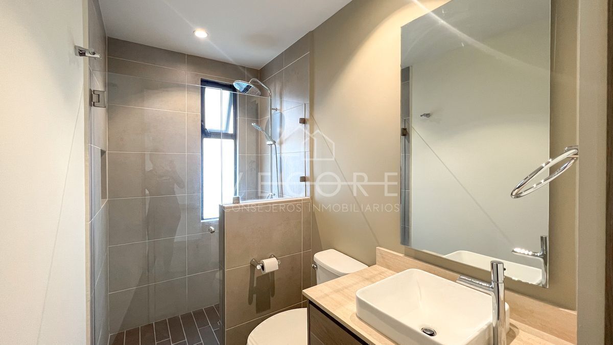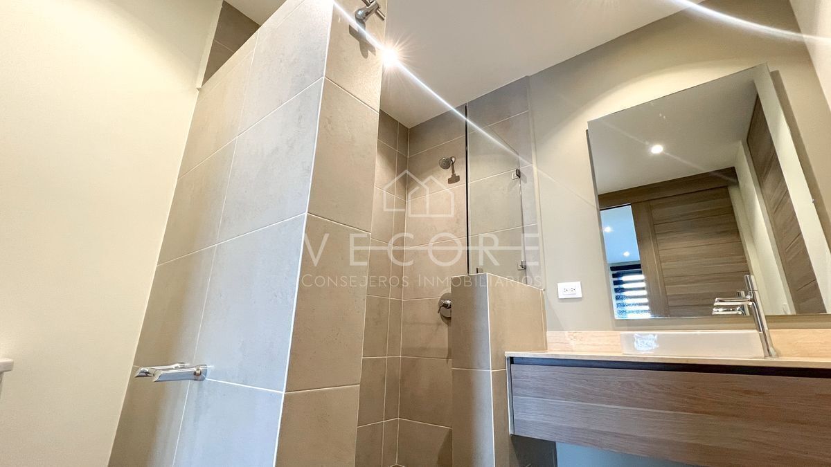 Baño completo con acceso directo a recámara secundaria y área socia