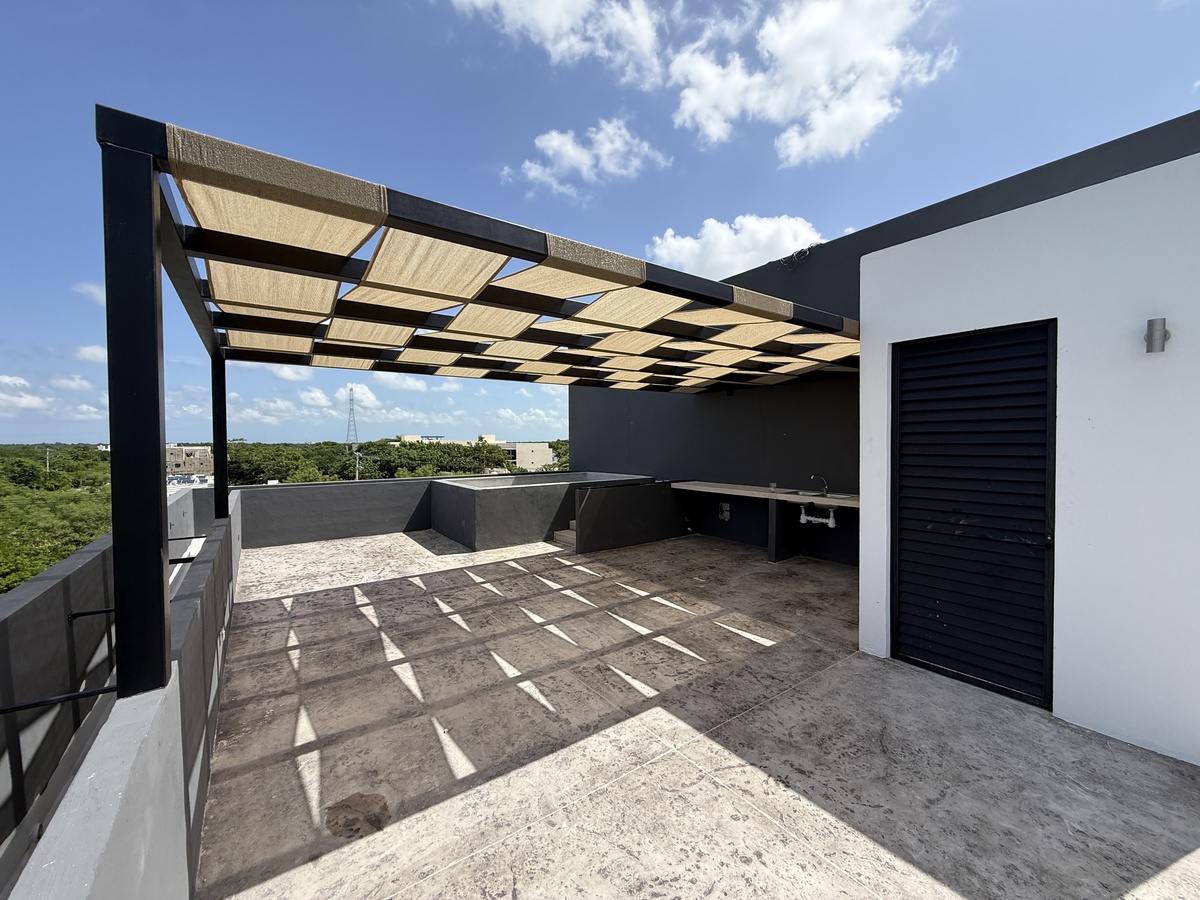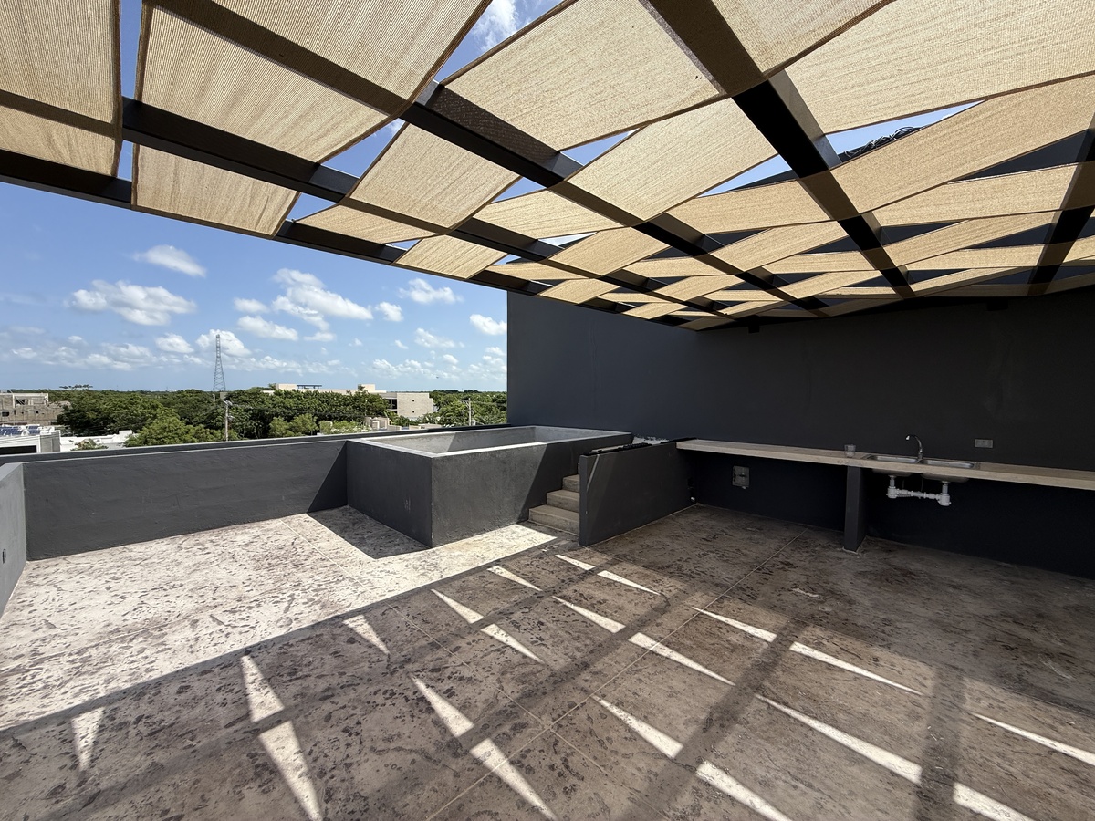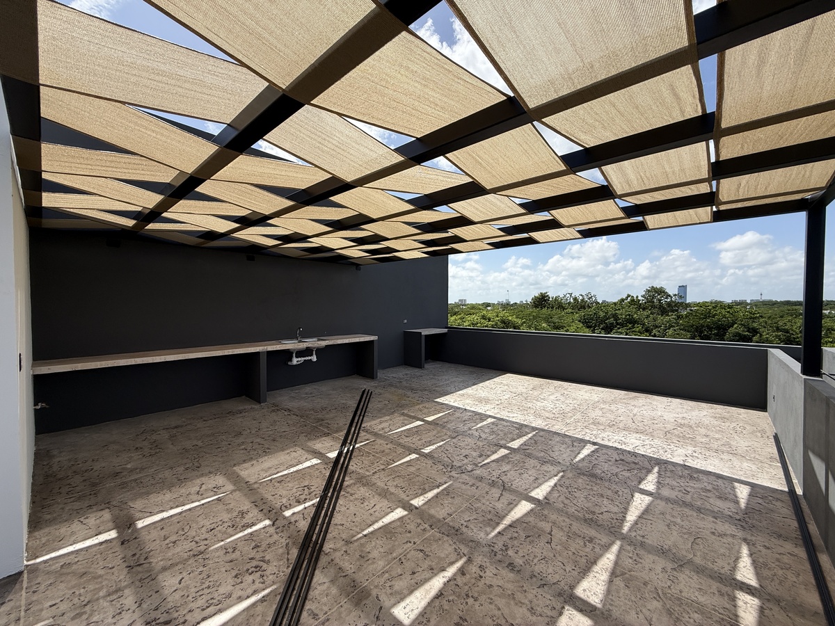 This apartment is located in Temozón Norte in a complex of 41 apartments, just steps away from a new shopping plaza, 7 eleven, oxxo, first-class private areas, and just minutes from Plaza La Isla.