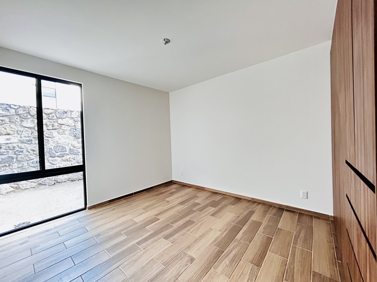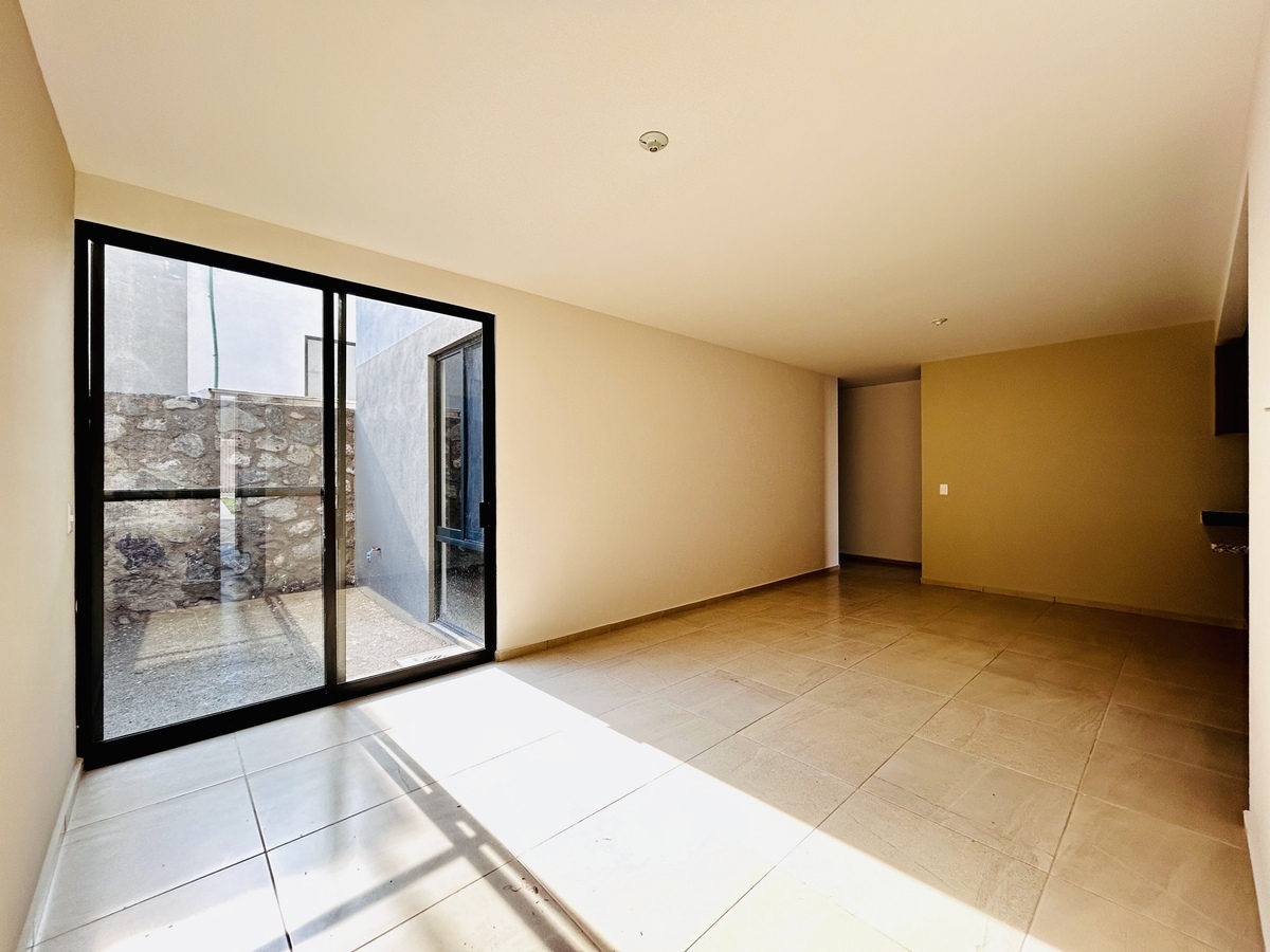 Este departamento se encuentra dentro de Thandi Residencial, es un departamento de una sola planta, con estacionamiento para 2 autos en paralelo. Acceso a la estancia principal de sala comedor, con cocina integral y cuarto de lavandería. Dispone de bodega exterior y jardín. Cuenta con 2 habitaciones, la principal con baño completo y vestidor, la habitación 2 con closet y baño completo fuera de la habitación.