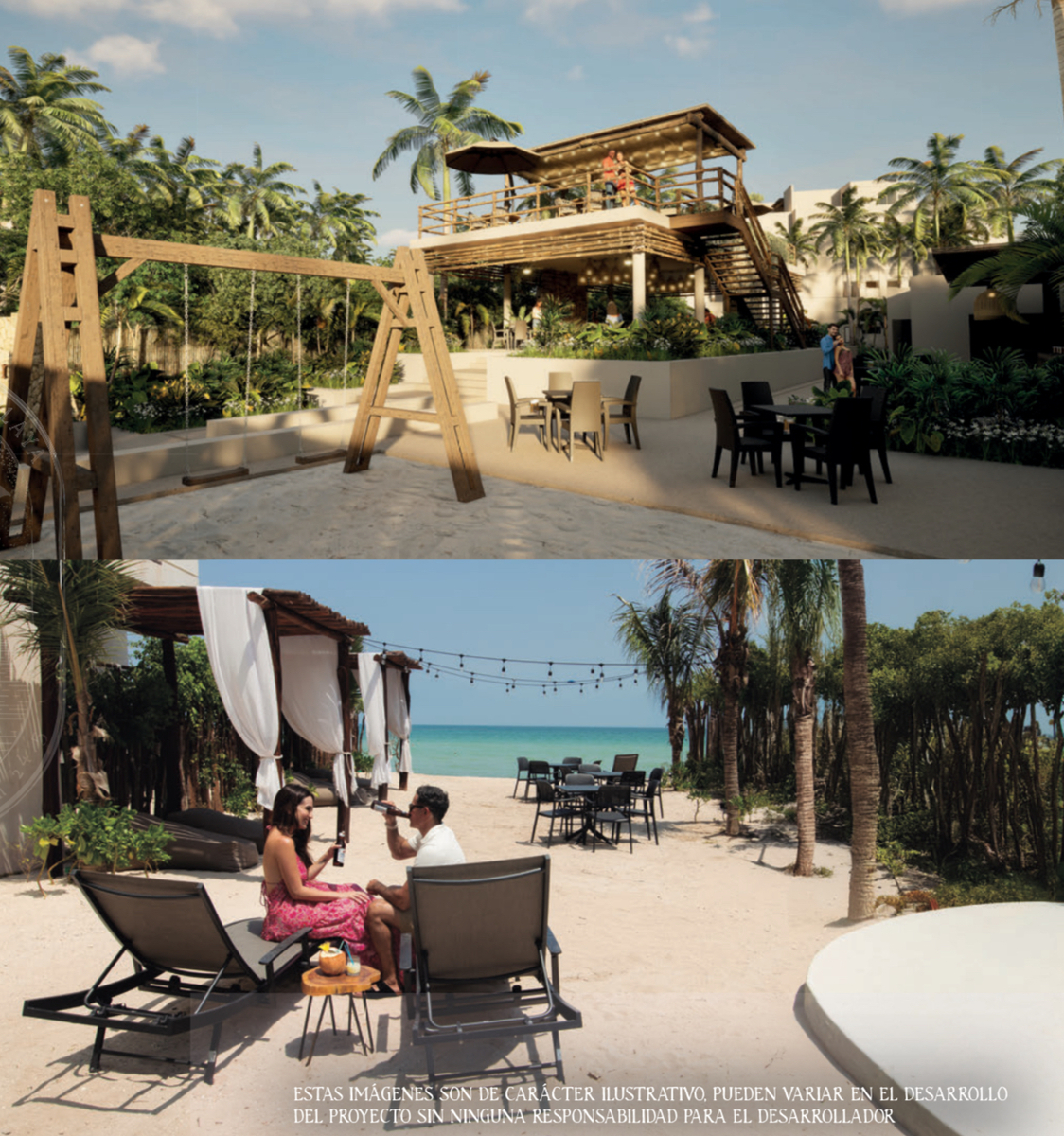 Incluye amenidades distintivas como una alberca Incluye amenidades distintivas como una alberca interminable de 200 mts de largo y un Beach Club frente al mar 100% entregado e integrado al desarrollo; también, estacionamiento con capacidad para 168 vehículos y bodegas de almacenamiento para uso exclusivo de los residentes.