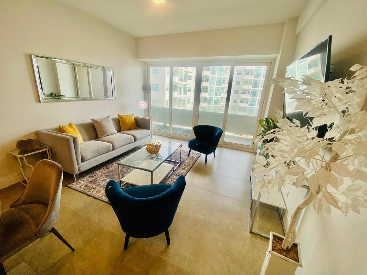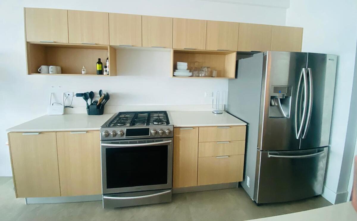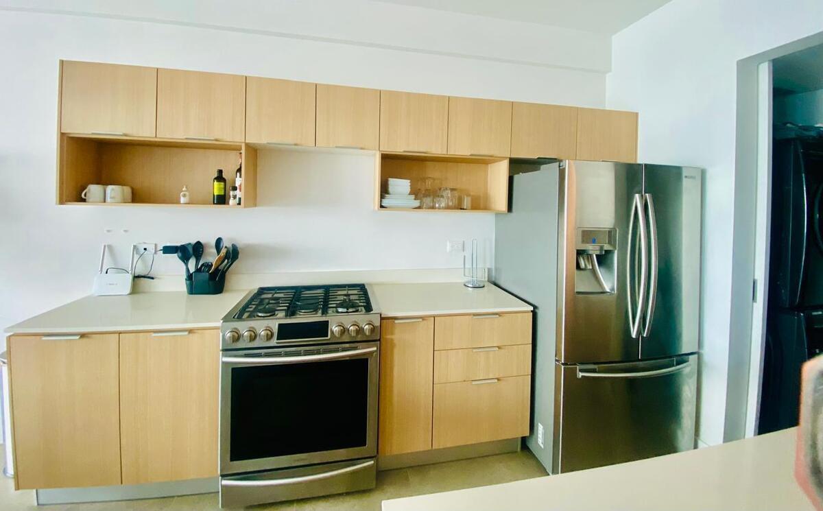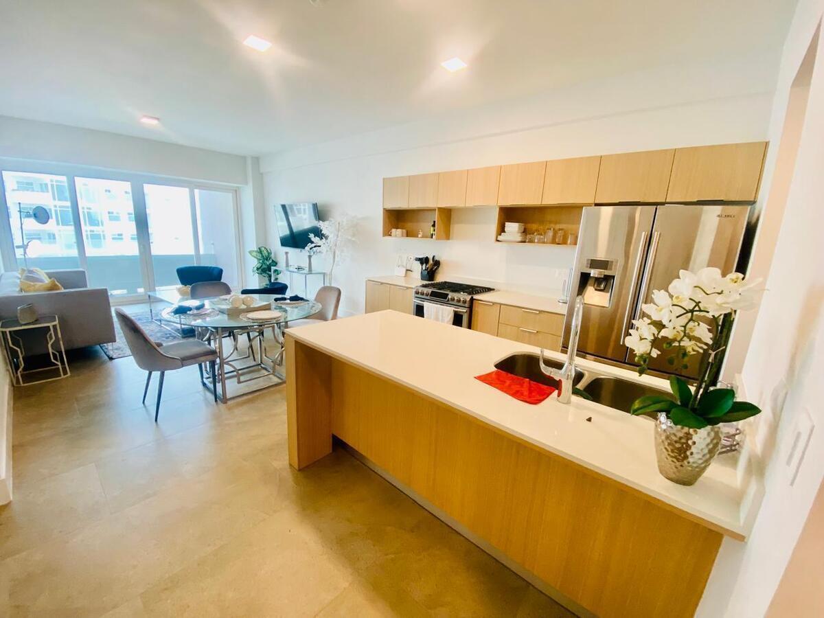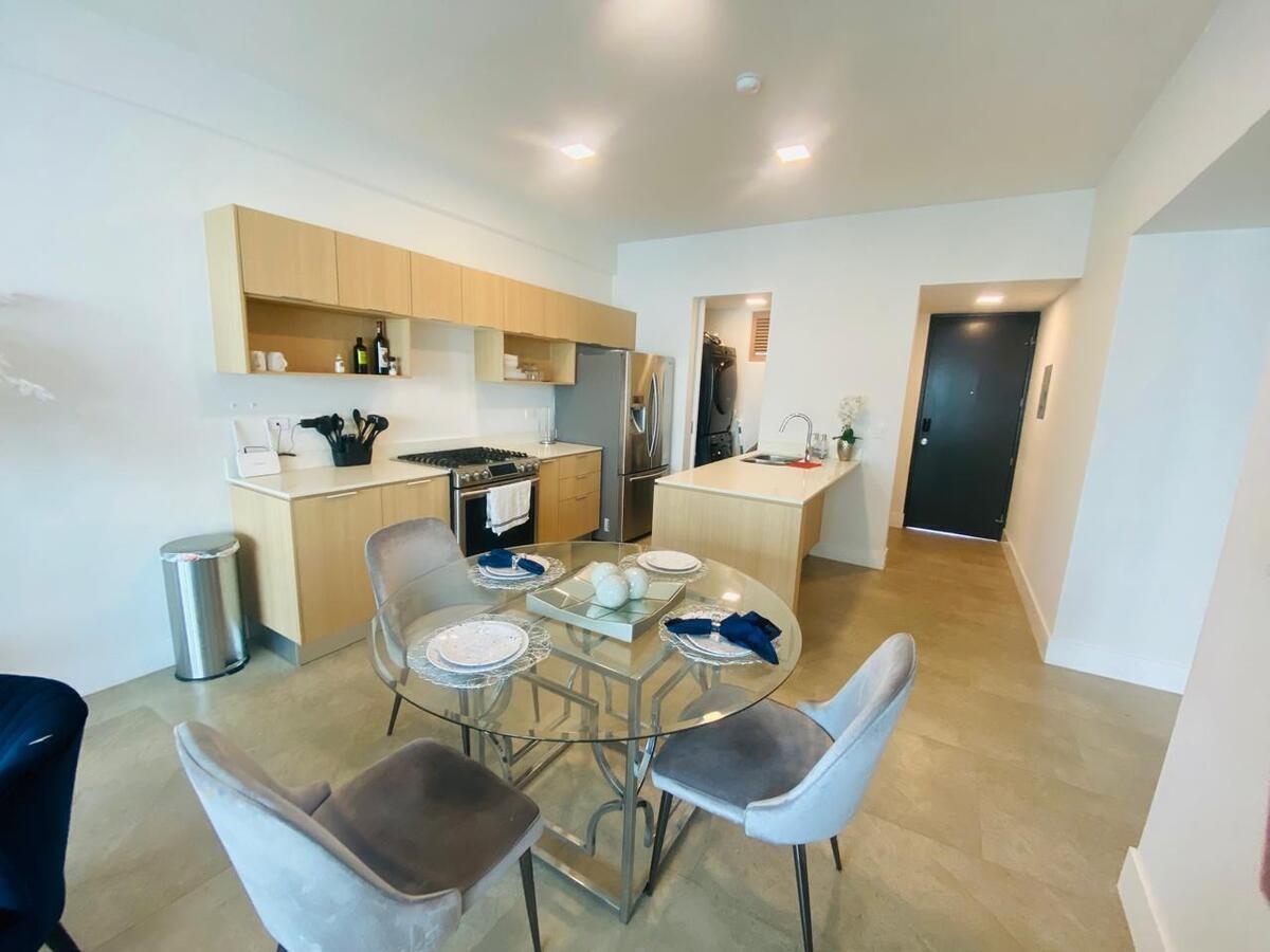 Amplia Sala Comedor, Terraza con vista al mar, Cocina integral con Electrodomésticas y cuarto de lavandería con lavadora y secadora.