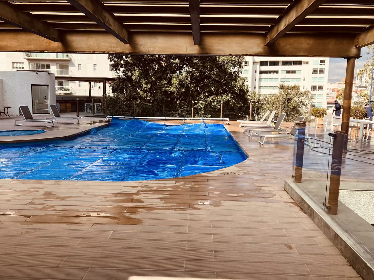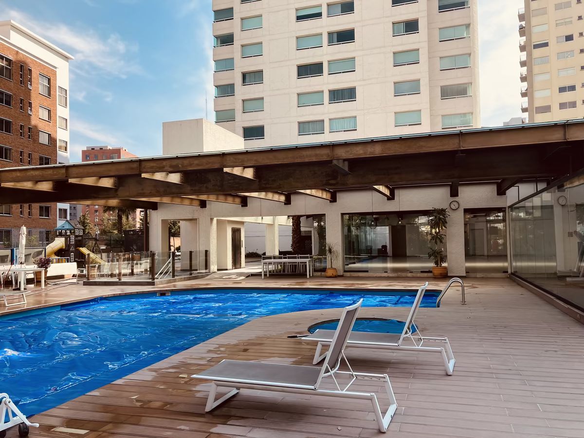 Amenidades: Cancha de padel/basket, alberca, gimnasio, salón de eventos, jacuzzi, asador, patio con juegos infantiles, lobby con conserje.