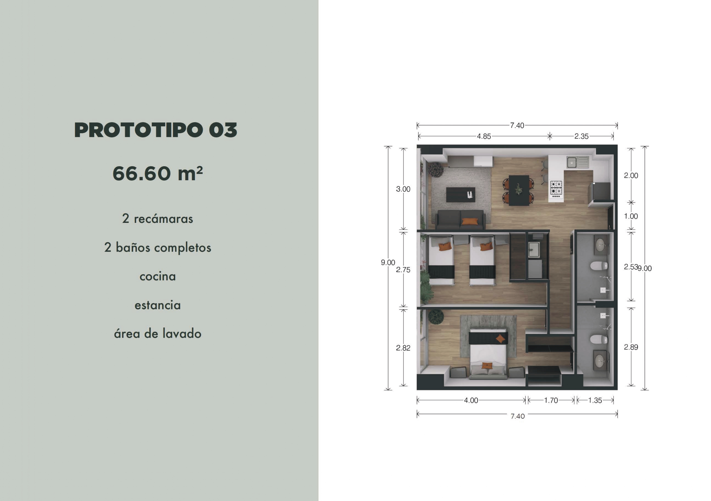 66.6 m2 habitables.