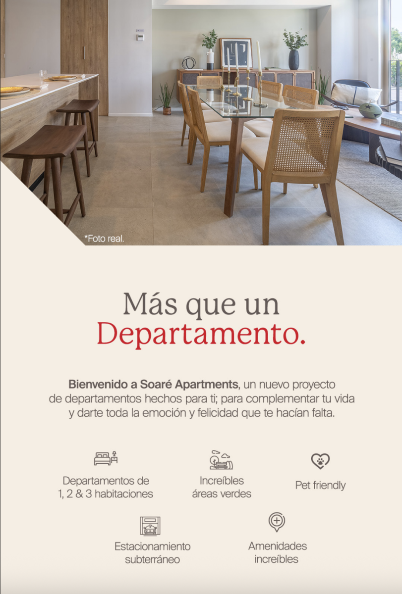 Soaré Apartments Phase Bosque is a residential development designed to offer comfort, connectivity, and added value within the Real Zone of Zapopan.