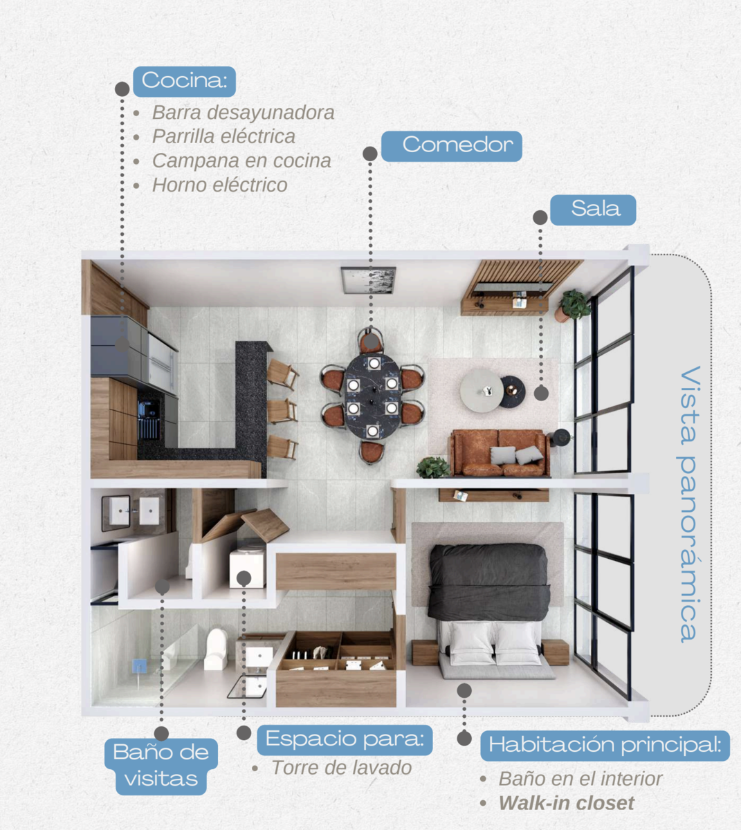 Precios y disponibilidad sujetos a cambio sin previo aviso. Las imágenes mostradas son con fines ilustrativos, puede haber cambios en la propiedad, de manera que solo sirven como referencia y pueden variar, así como los muebles y equipamiento son únicamente representativos para ambientar los espacios y no están incluidos.El precio publicado no incluye gastos notariales, avalúo ni impuestos de adquisición, el cual se determinará en función de los montos variables de conceptos de crédito y notariales que deben ser consultados con los promotores de conformidad con lo establecido en la NOM-247-SE-2022.