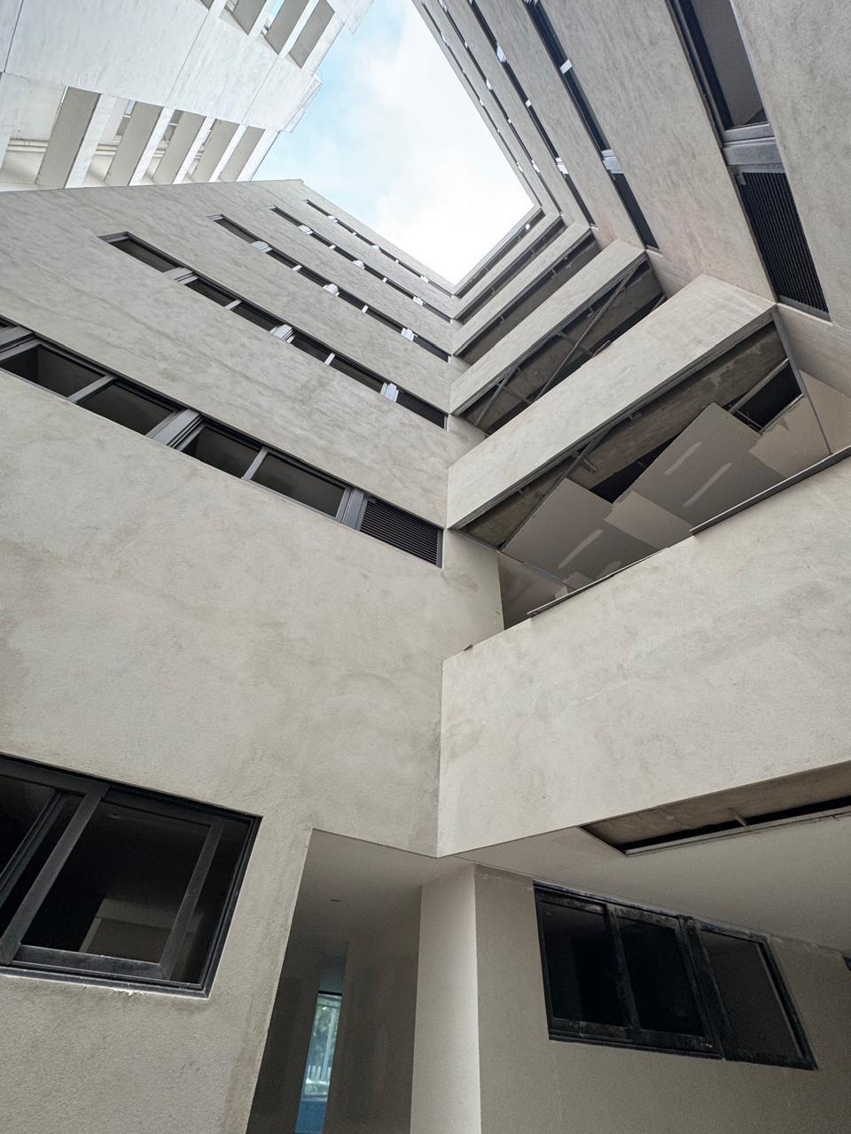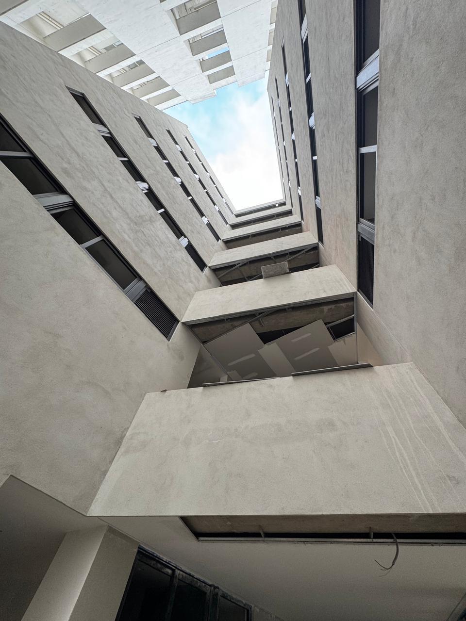 Desarrollo con 35 departamentos en total. Distribuidos en 5 pisos. 6 departamentos por planta.